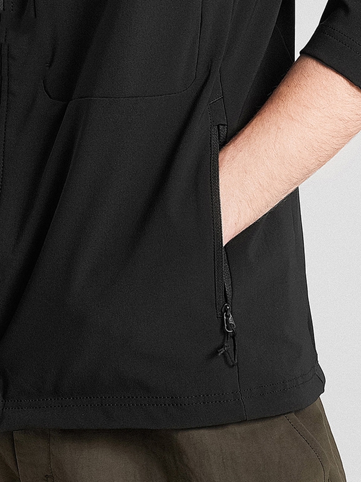 两侧拉链口袋,增加储存空间。松紧的弹力袖口,让手腕更灵活舒适。精致美观的锁边工艺,更好的贴合身体肌肤,让穿着更感舒适。