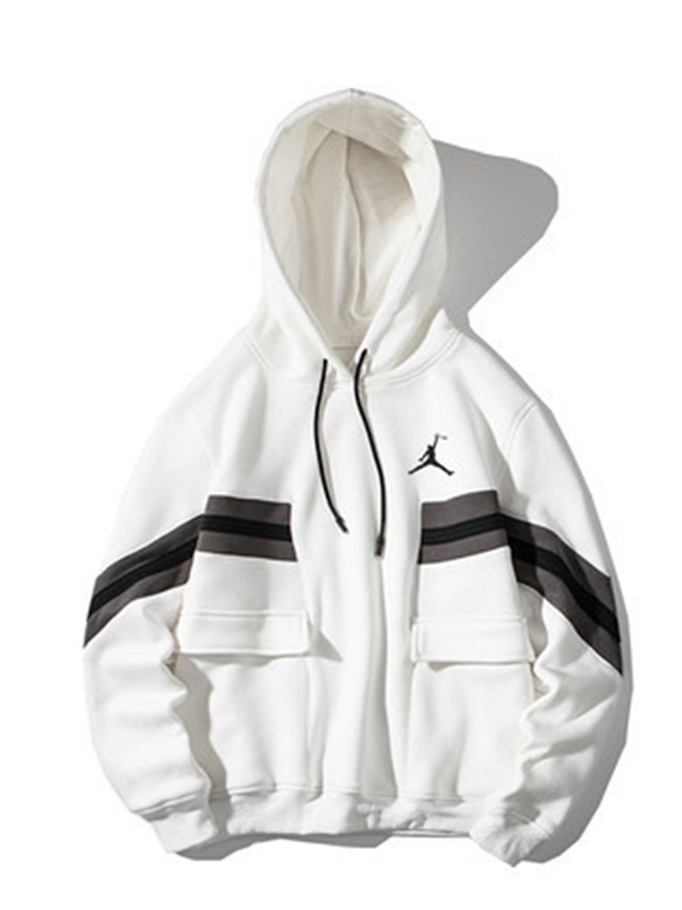 宽松的连帽套头款式,落肩的袖子设计,十足的增加舒适性,罗纹编织肌理的袖口下摆,收身效果穿着利落干净,因为配色的新颖跟大胆,且尽显穿者时尚品味。