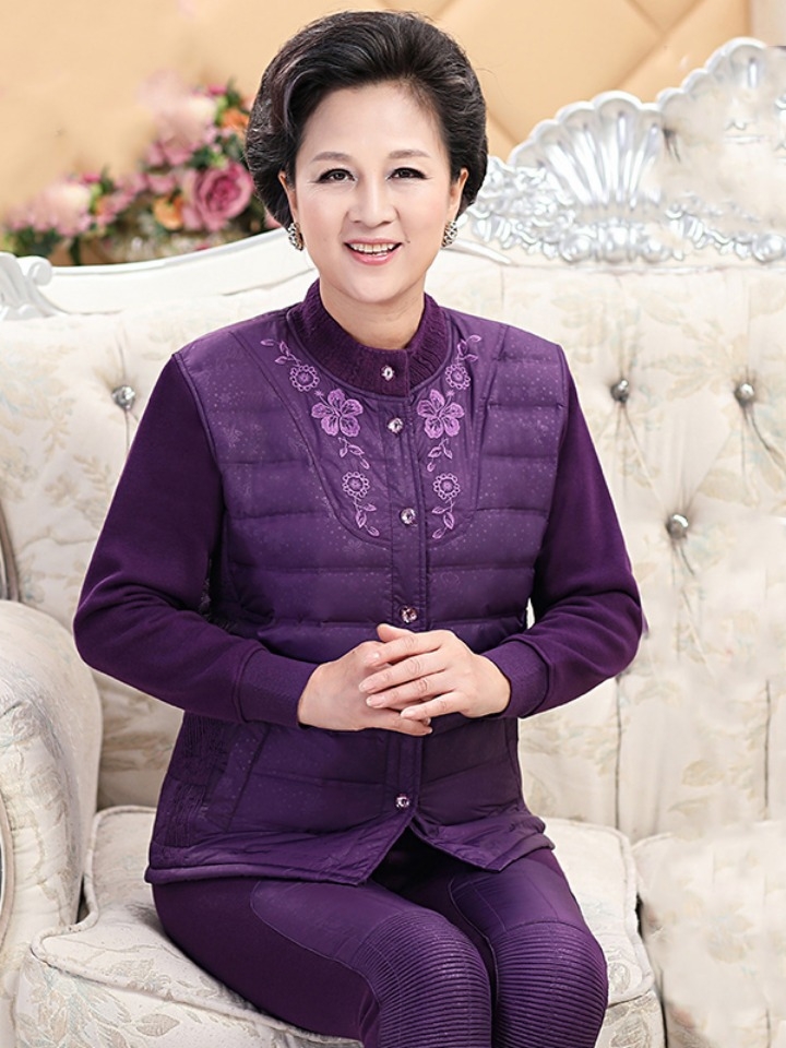一款适合中老年妈妈爸爸的羽绒内衣套装。轻薄羽绒填充,保暖性好,上身轻盈;精致的绣花点缀,增加了吸睛之处。成套的设计,免去了搭配的烦恼。