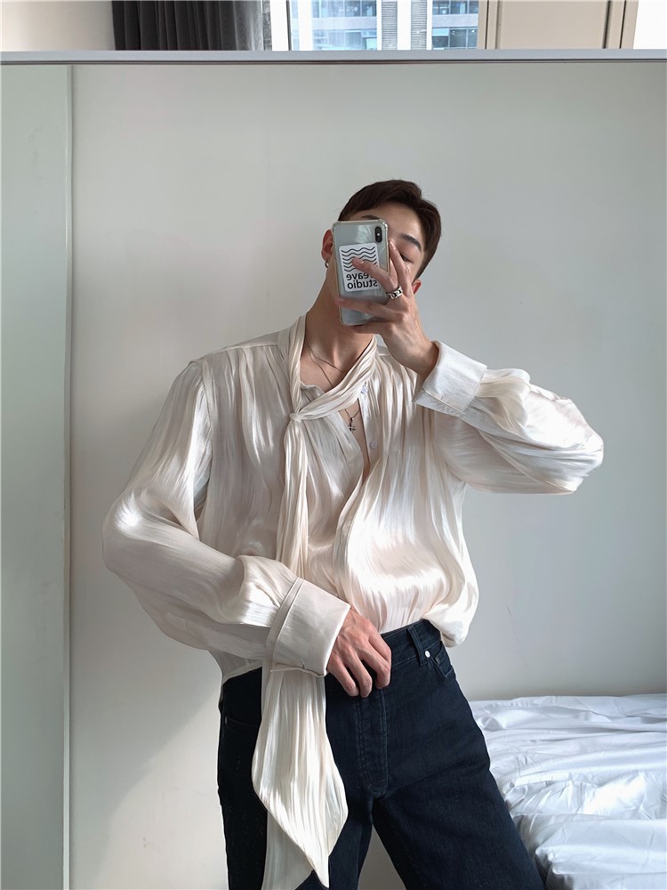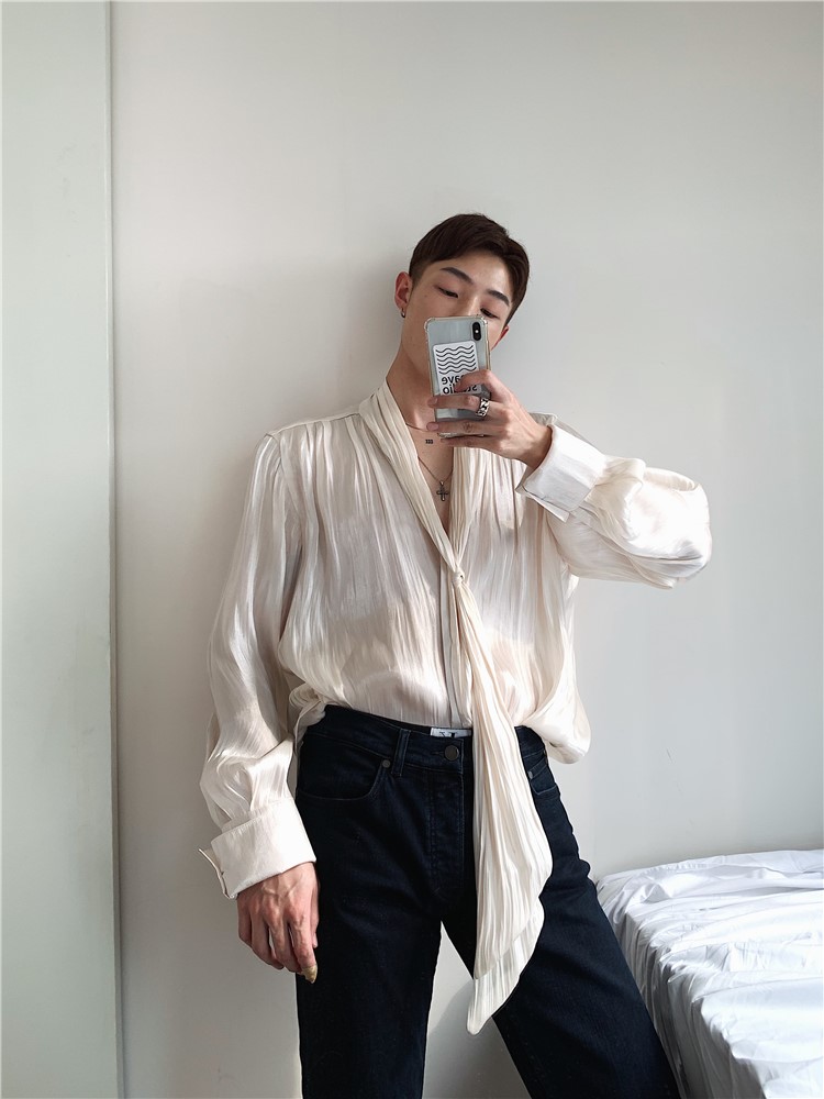 衬衫的设计亮点在于袖子的飘带设计,让整体看起来更有层次感,同时也是一种亮点,让你的气质更加的出众。