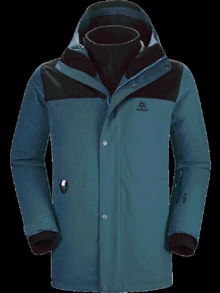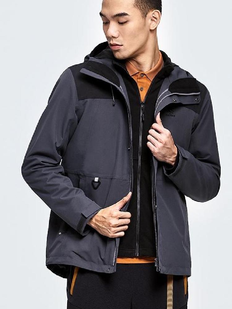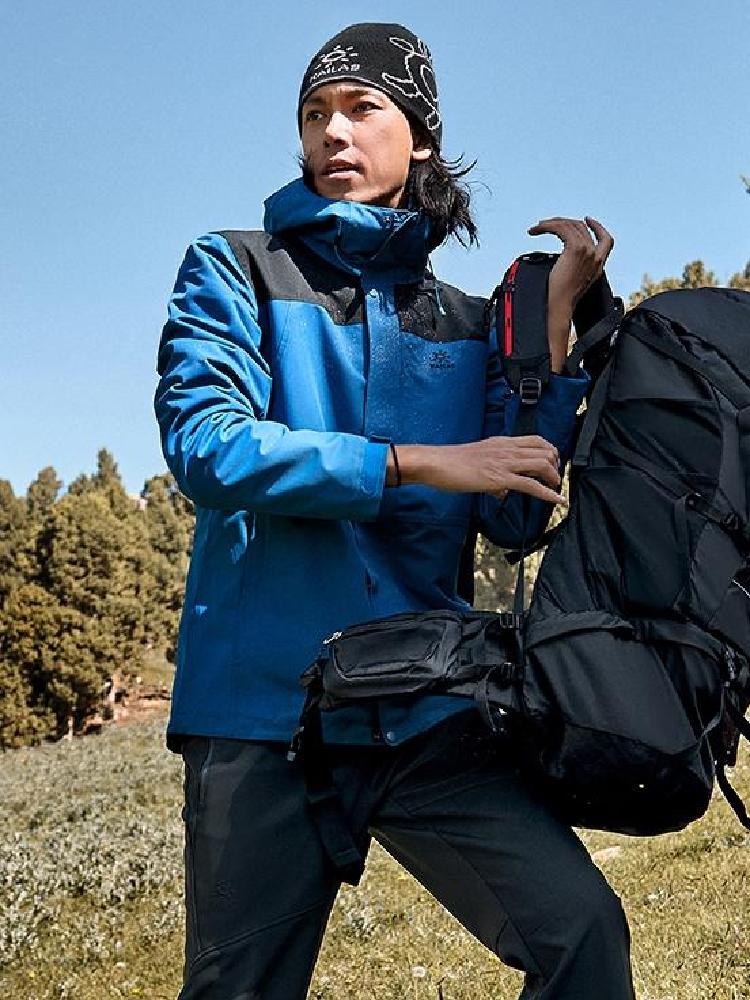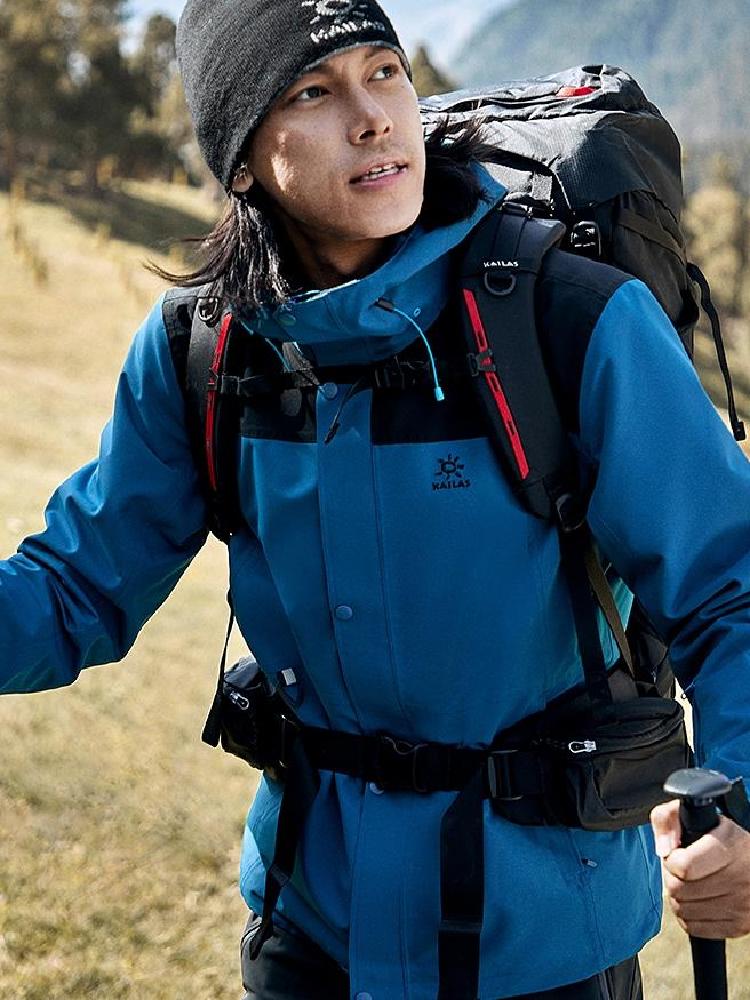 WetFfree标识,防水5000 透湿4000;全防水压胶工艺;可拆卸全景防水兜帽;立体裁剪设计;弹力收紧下摆;可调节魔术贴袖口;内配抓绒保暖内胆,可根据气候变化分拆组合三种穿着。Shehe极星,国产中档户外品牌,产品线以服装为主,在户外圈内口碑不错。