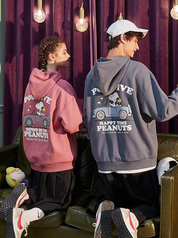 秋季新款情侣套头卫衣。个性的连帽卫衣,时尚潮流。独特的卡通印花图案非常可爱,很适合情侣们。