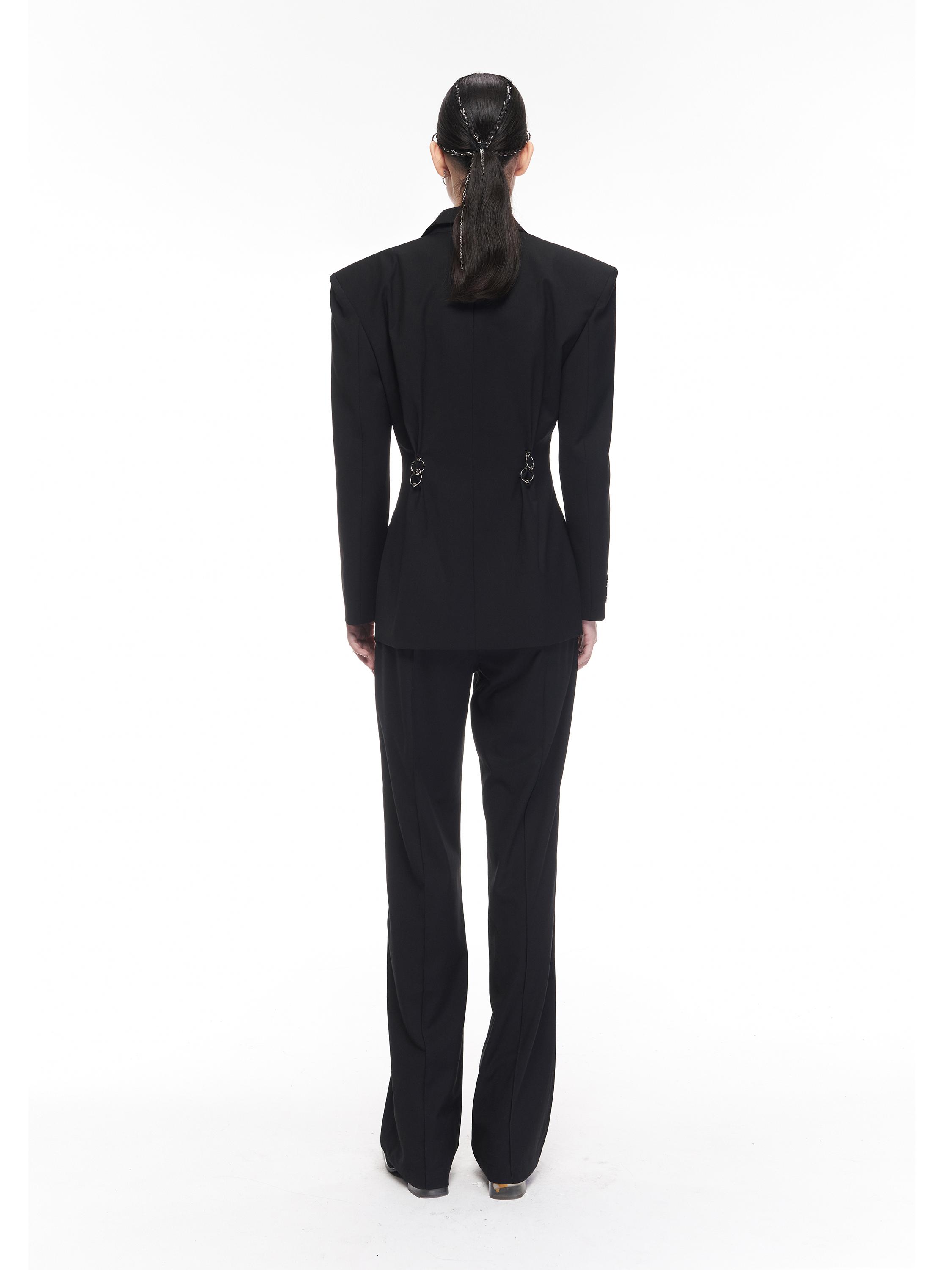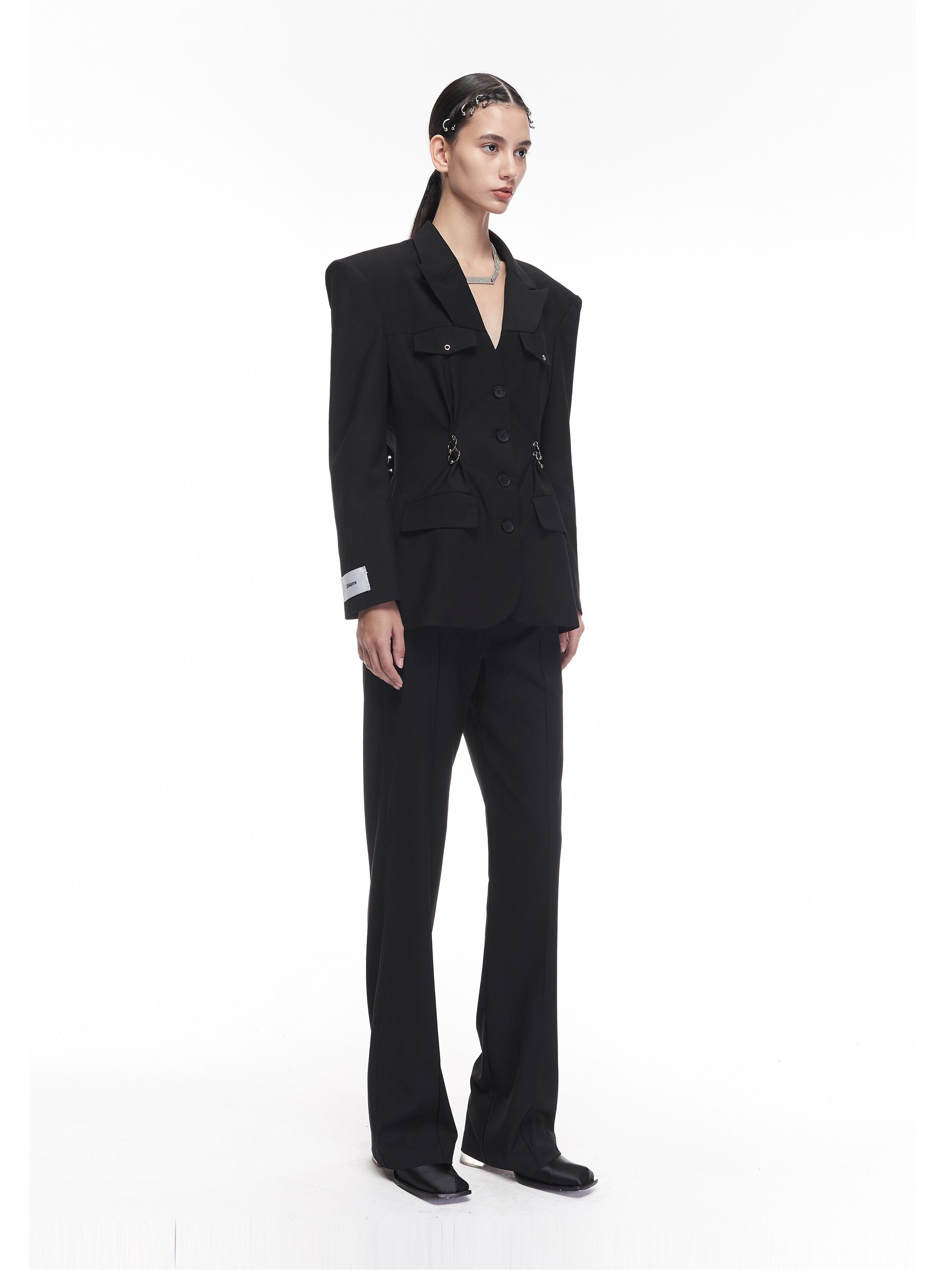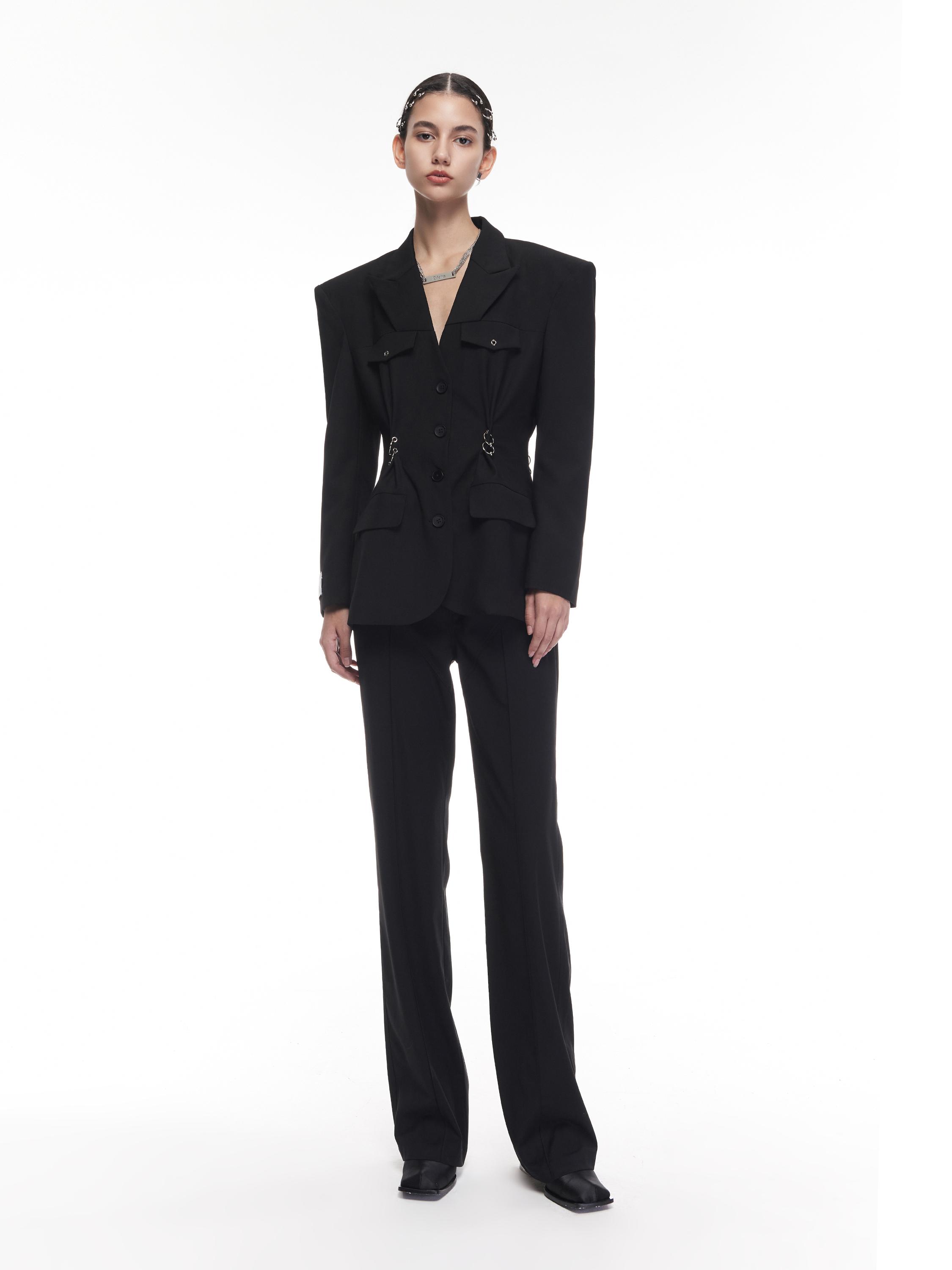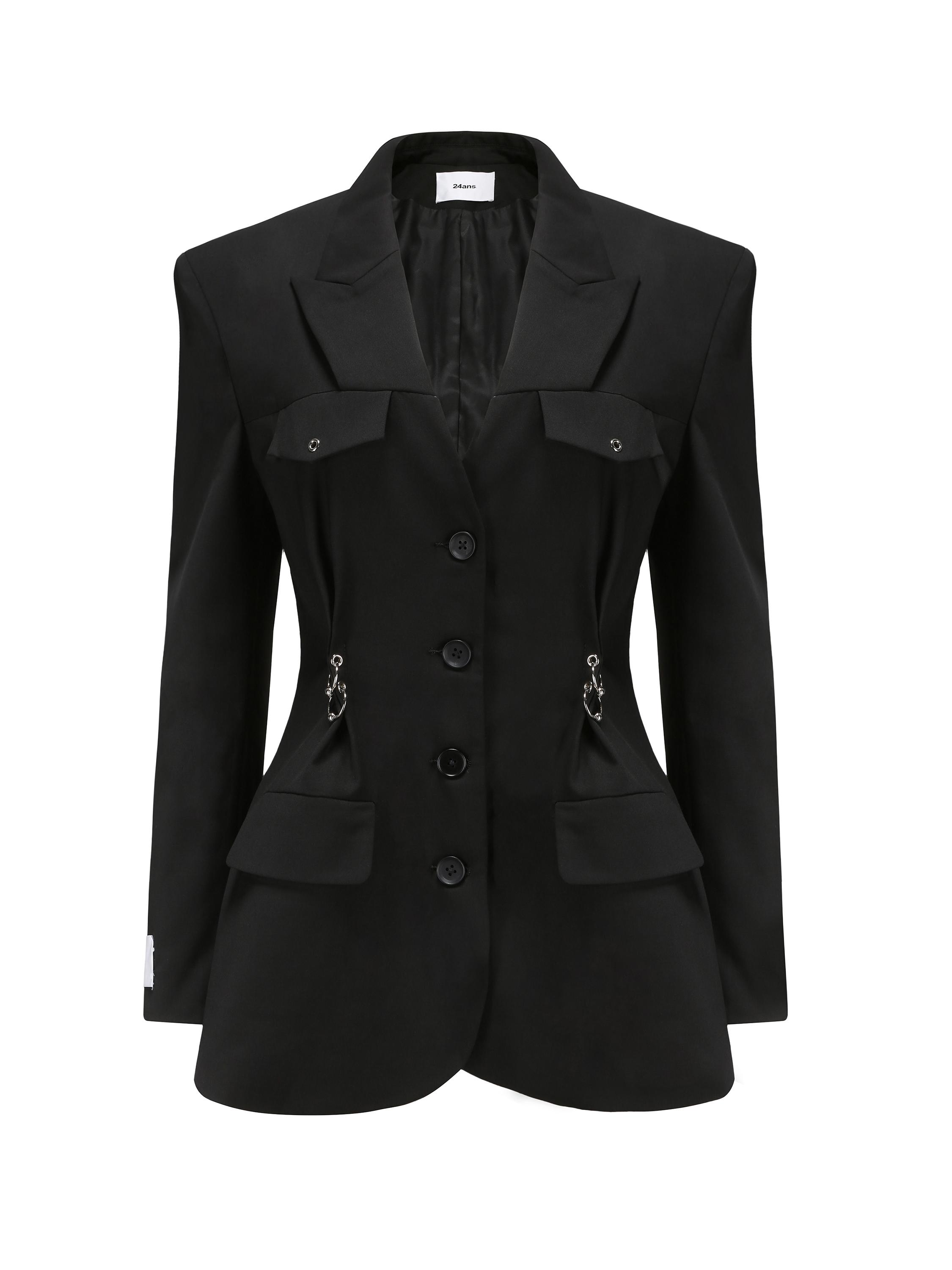 黑色小西服是每个OL一族的必备款,这件简约设计的小西服,采用无翻领的V领款式,用利落的线条修饰脸型,一粒扣的设计简约又不式经典,是非常容易搭配的一款哦~