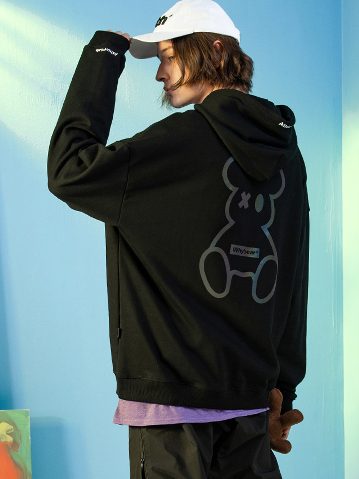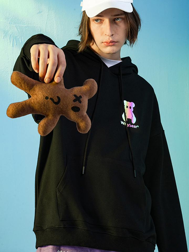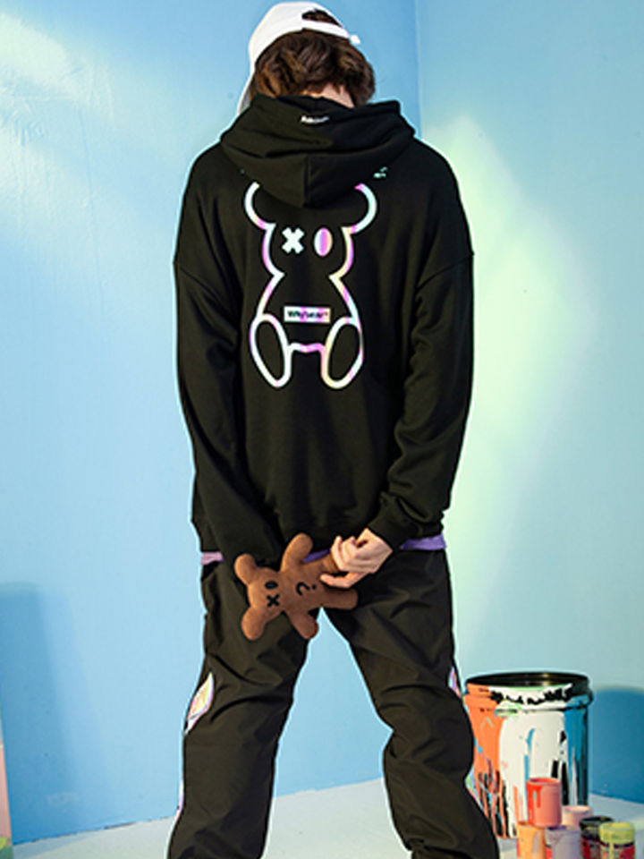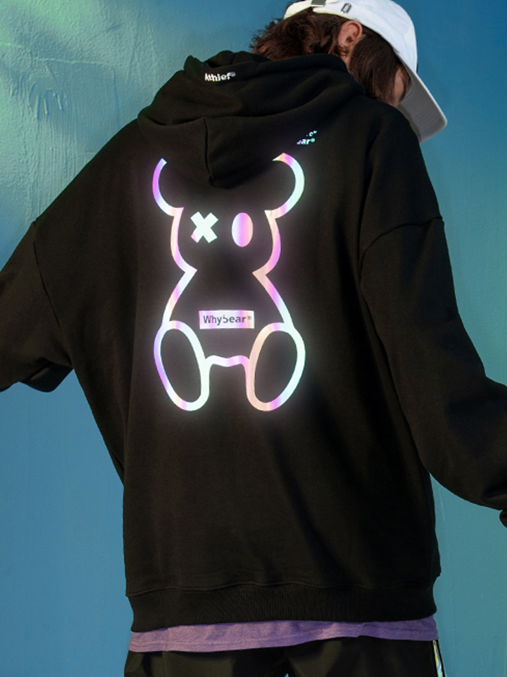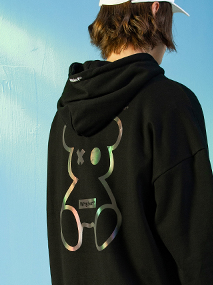 充满科幻感的小熊印花,新潮的图案设计带着一丝魔力,打破了黑色的单调沉闷。