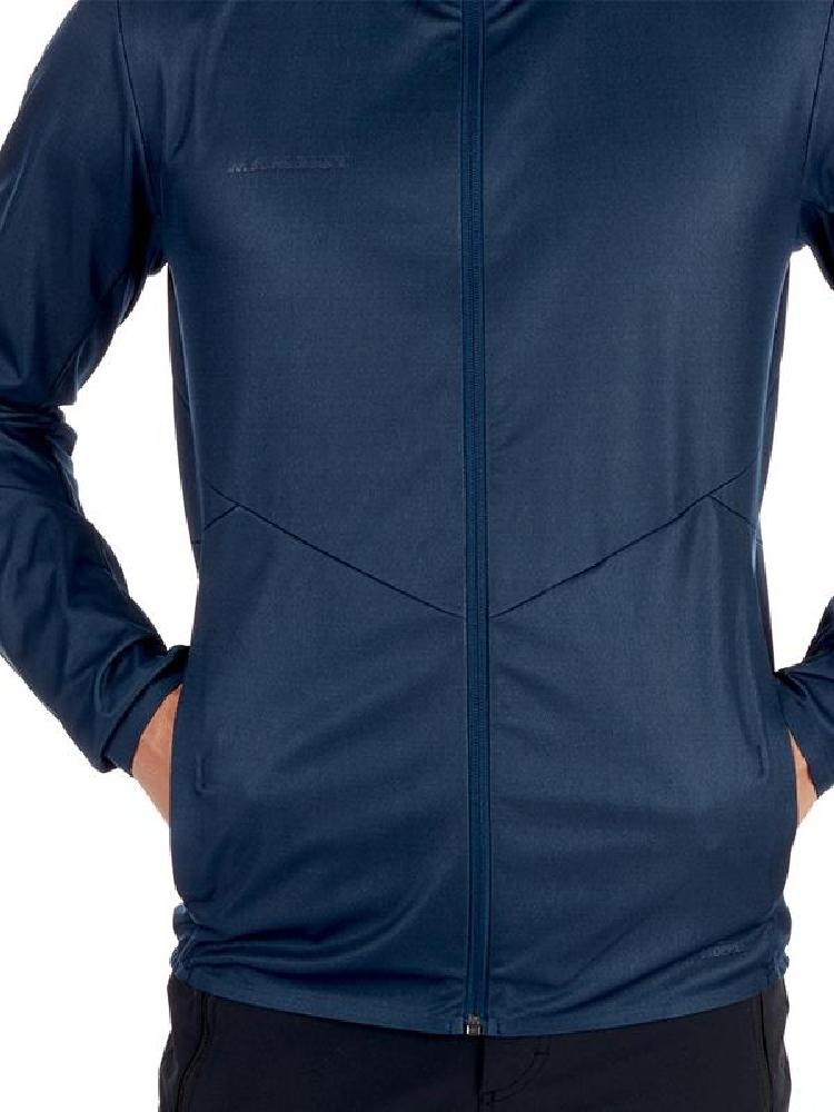 该款男子冲锋衣来自瑞士专业户外品牌MAMMUT,以深海蓝色的主题亮相,纯色的外观结合立领造型,尽显男士的大气利落,衣身精选DRYtech防水材料打造,口袋拉链加入防水压胶贴条,打造完美的防水体验,结合连帽设计与魔术贴袖口,抗风保暖性能也格外出色,呈现温暖舒适的户外穿着体验。