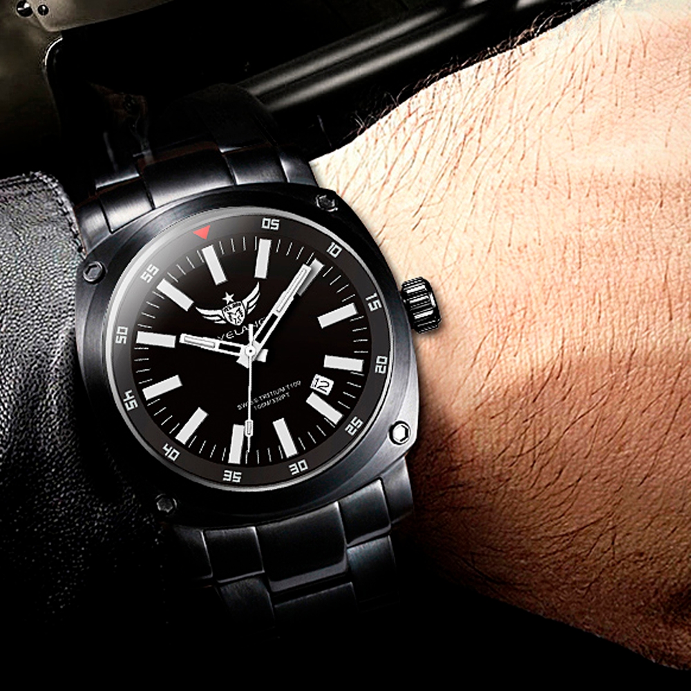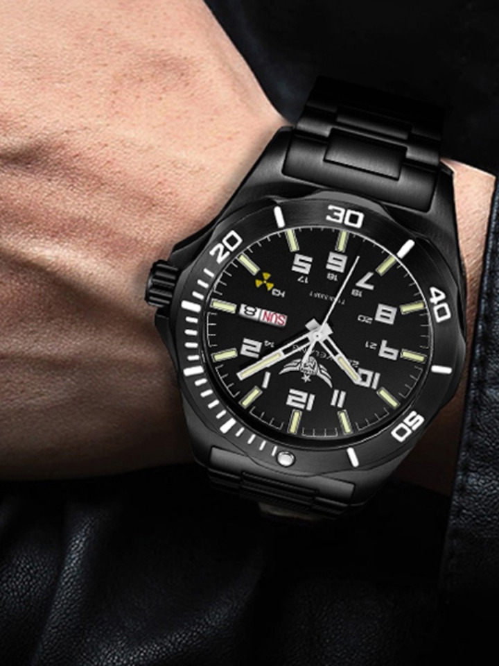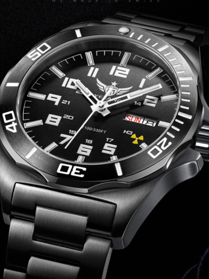 采用全新钛合金制作,彰显野狼智慧,瑞士H3自发光系统,夜光恒亮25年,品质与品味兼具。100米深度防水,潜水级别待遇。传奇制表工艺,打造型男的专属腕表。