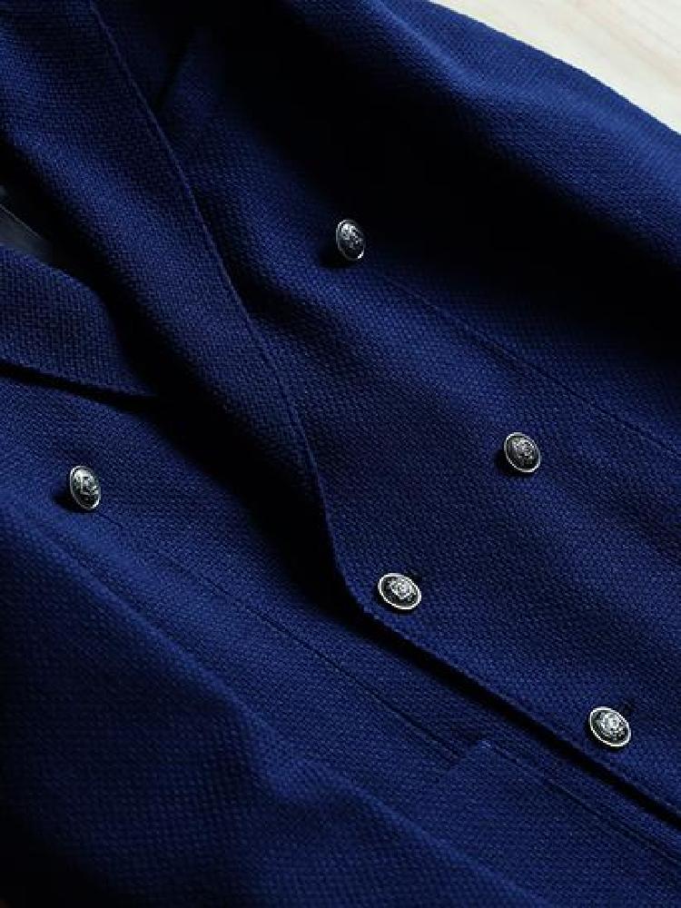藏蓝色西装领双排扣毛呢大衣,利落的西装翻领,打造率性大方的气场,直身挺括的利落版型,塑造挺括感,藏蓝色是冬日里的一抹优雅!