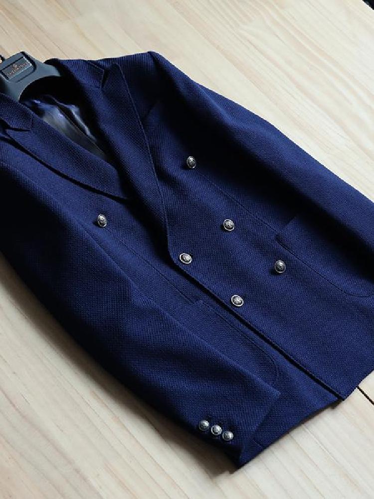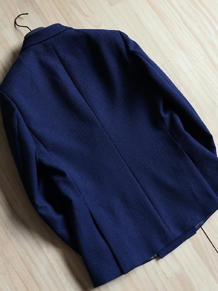 藏蓝色修身双排扣毛呢外套,双排扣设计,经典简约,彰显时尚英伦风,藏蓝色更是衬托肤色的一把好手,彰显气质。