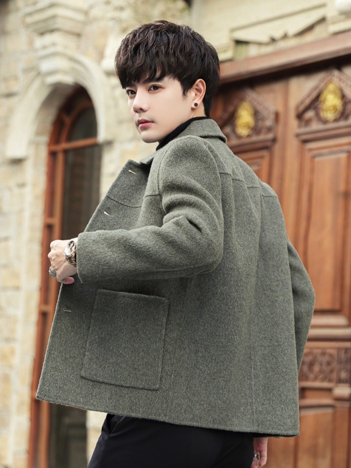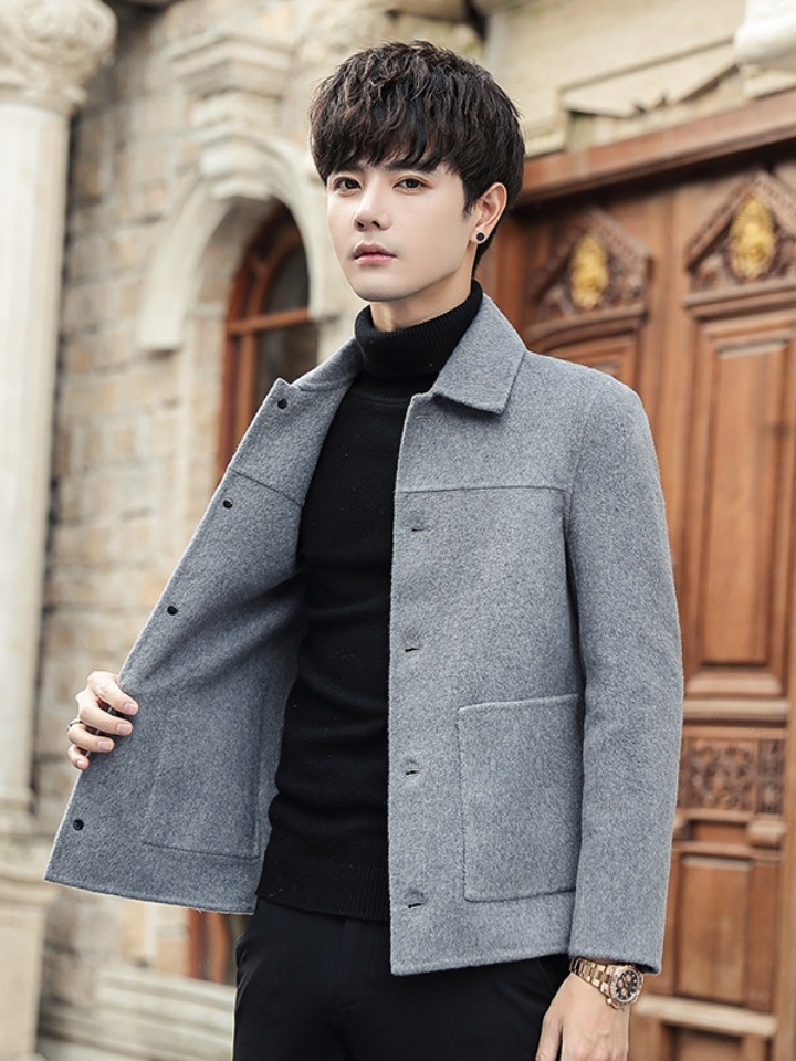 这件短款的毛呢外套,更加适合小个子的女生穿着,整体拉高了身材比例。建议搭配一件修身的高领针织衫作为内搭,再加上一件加绒裤子就可以美美的出门了。