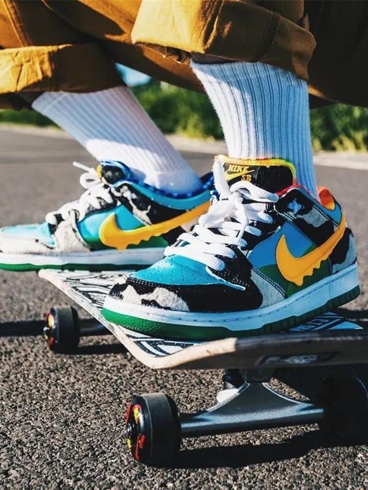 足弓对称的炫彩图案,装饰Nike SB的Logo,是这双球鞋惯有的在鞋垫上大做花活的风格。