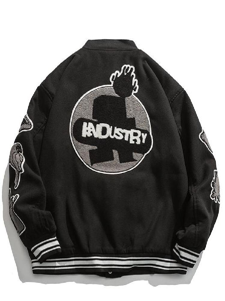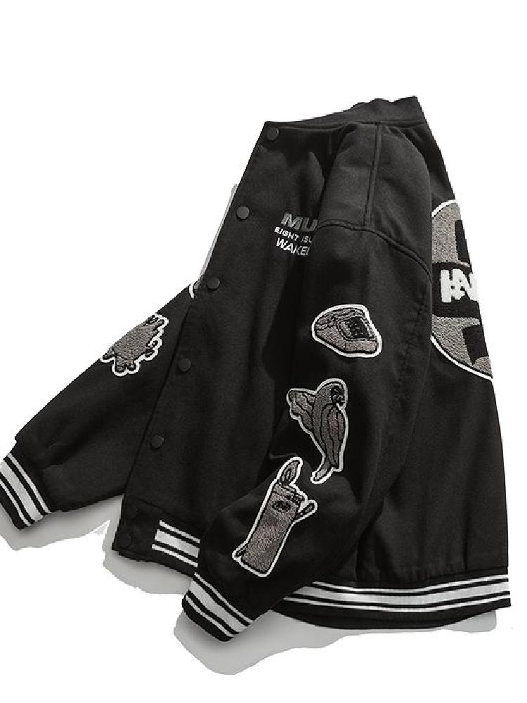 这款夹克外套选用了棒球夹克的版型设计,简约的棒球立领,赋予了衣身活力感和运动气息,显得更有朝气;衣身采用了撞色和拼接的设计,增添了衣身的层次感;精致立体的毛巾绣装饰,色彩丰富,彰显趣味性和童趣,活跃衣身整体,上身更显的青春有型,散发出街头潮流气息,酷帅有格调。