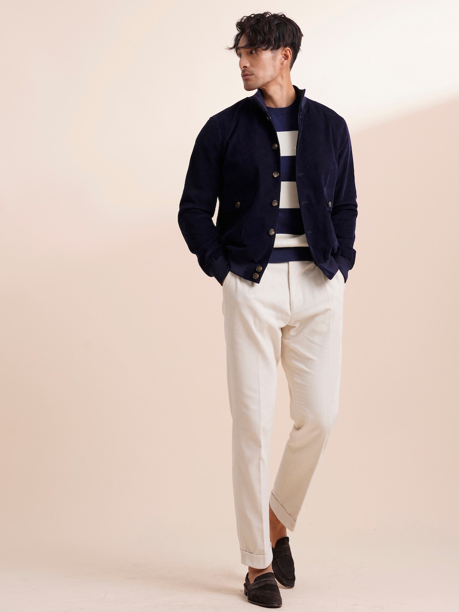 外套类目的夹克单品,我们从未放弃过对于经典面料的重新利用解读,花纹耐看经典,充满田园与英式风情的灯芯绒,将是夹克的另一重优选。