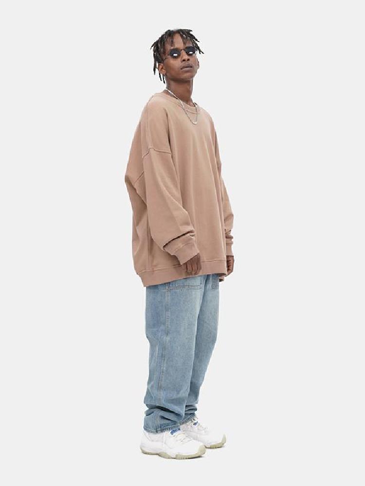 非常宽松简约的一款时尚卫衣,卫衣胸前的织带设计,非常有个性,让简约的卫衣变得与众不同,袖子上的拉链口袋更具潮味。