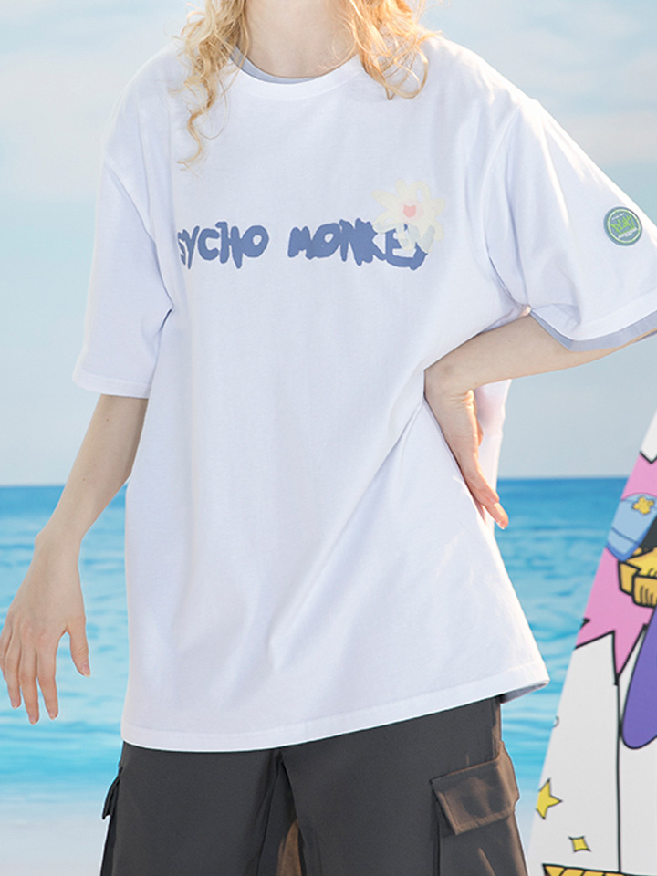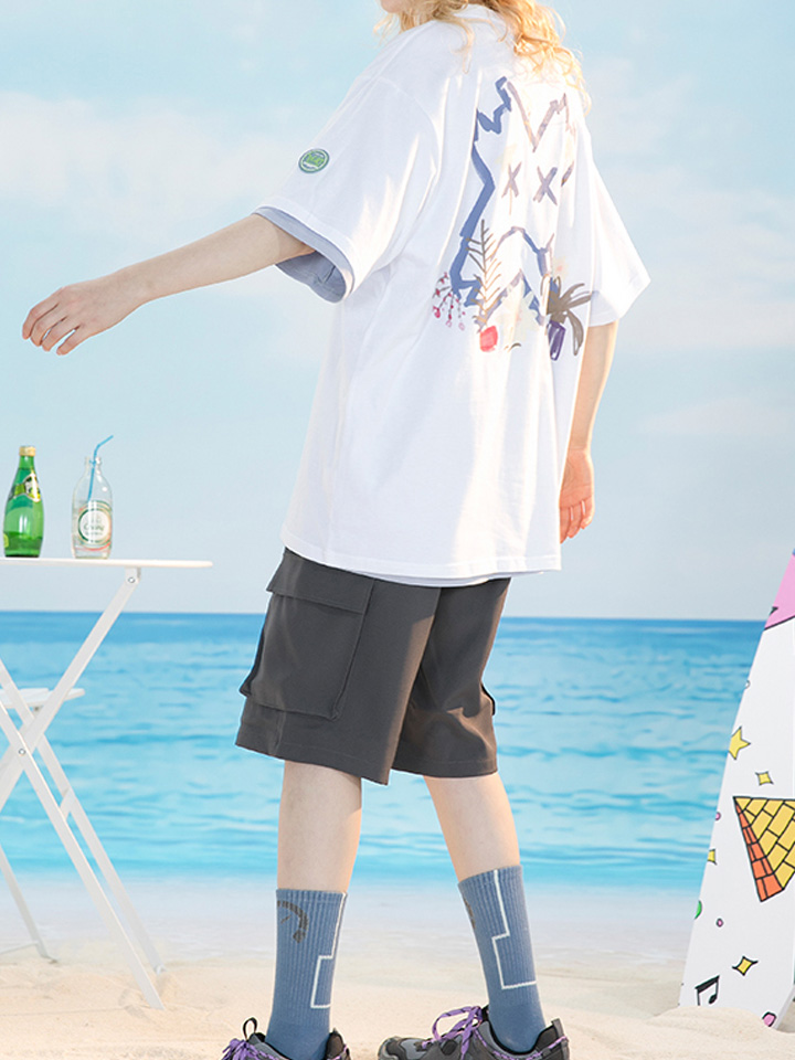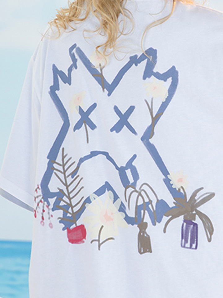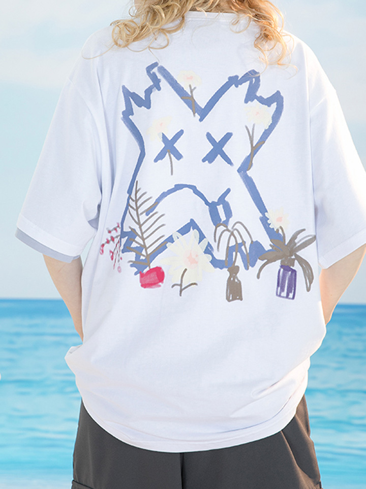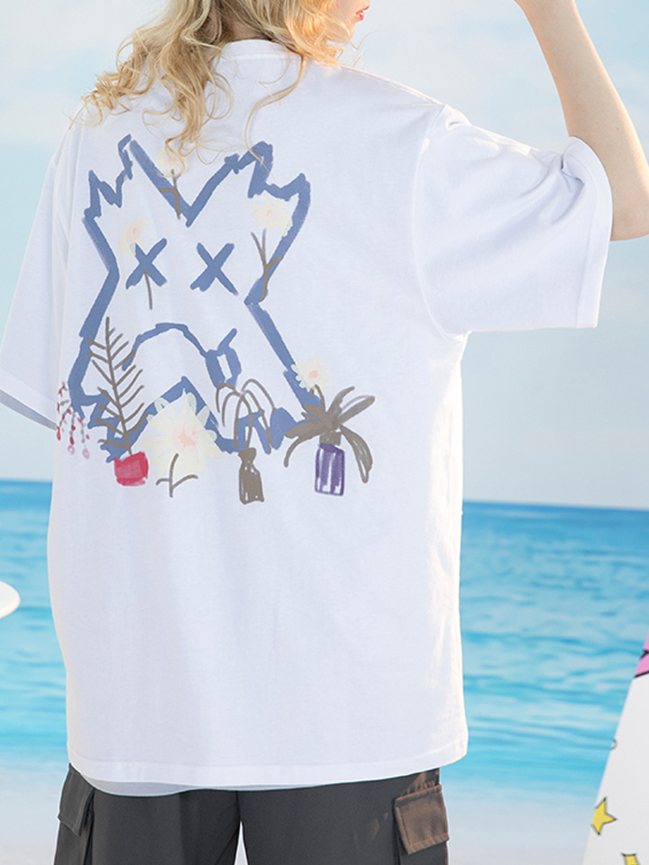圆领纯棉印花短袖T恤,具有良好的吸湿透气性,不易变形起球。采用圆领剪裁设计,很好的修饰的脸型。
