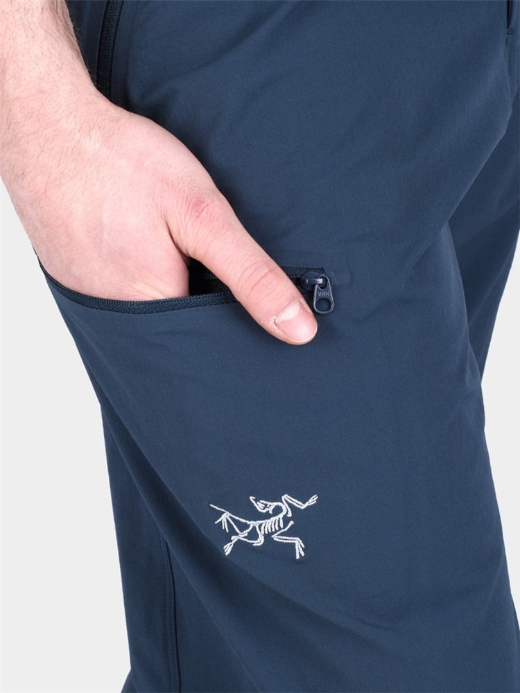 长裤采用弹力面料,舒适透气,具有良好的抗撕裂性能;