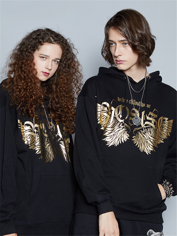 胸前的烫金LOGO,彰显品牌的品质感,连帽设计,更显青春活力。