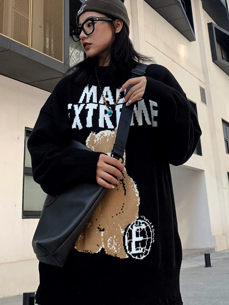 黑色包包本身有些单薄,在秋冬搭配时可以考虑毛衣,以及比较厚重的卫衣,下身尝试牛仔裤以及工装裤,与包包的风格呼应,还可以配上线帽和黑框眼镜。