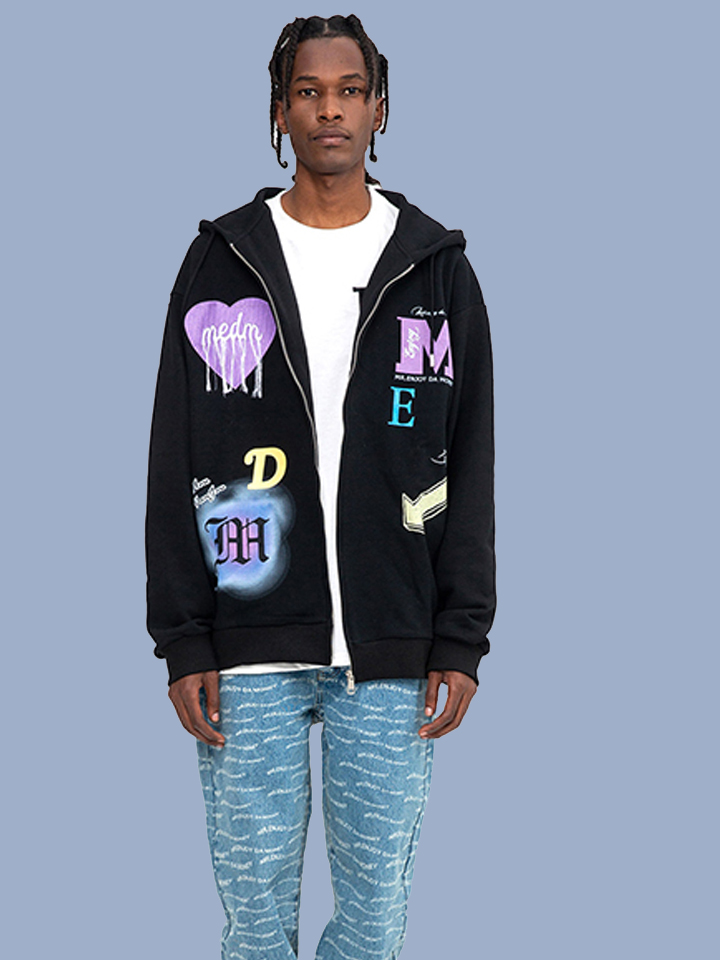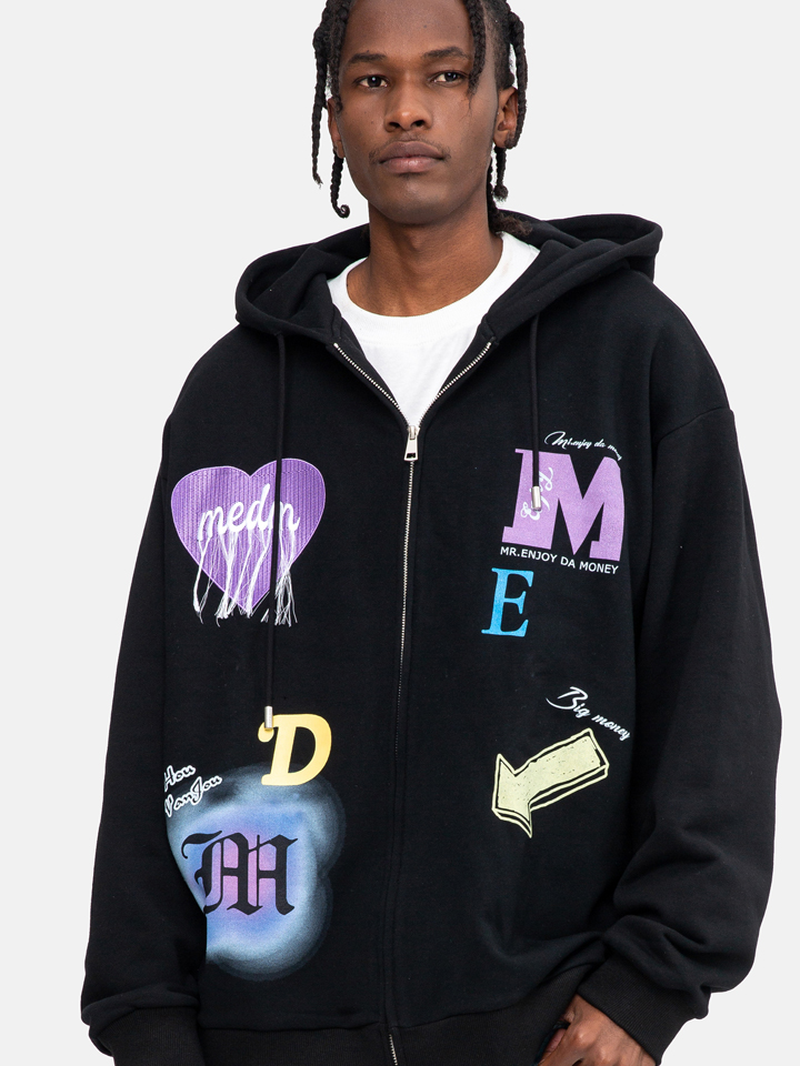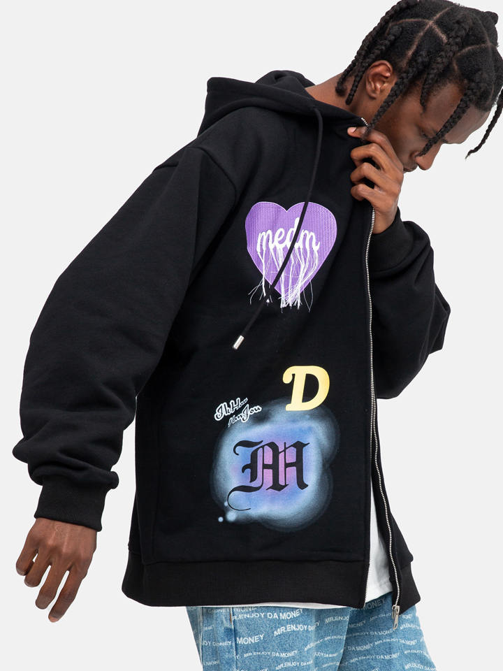 带点酷酷的街头感气场的一款卫衣单品,将街头风的标准配备完美几何,胸口的字母印花图纹,整体效果带点嘻哈风。