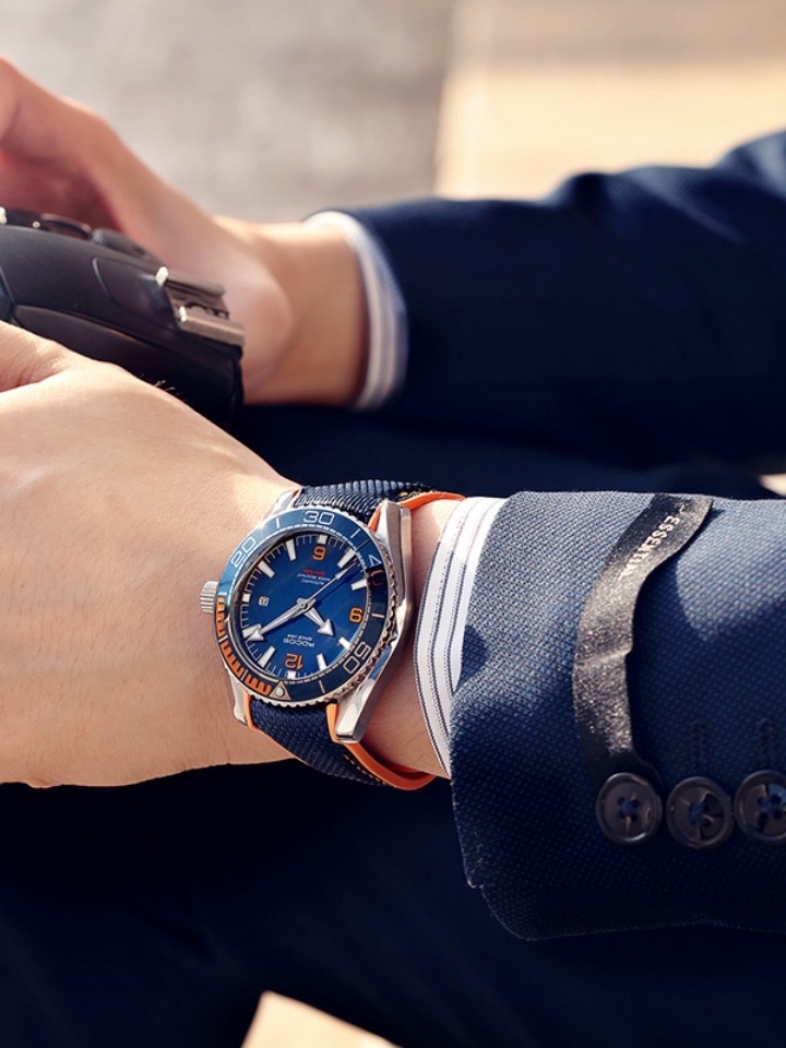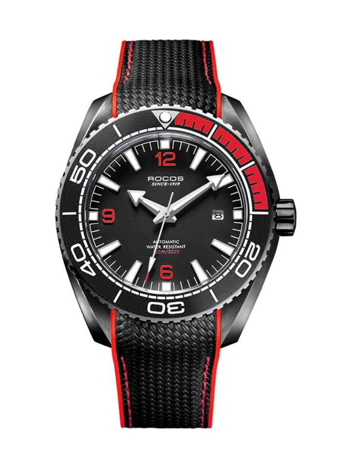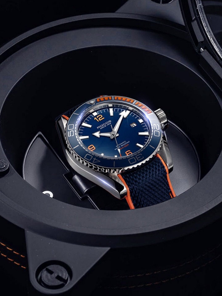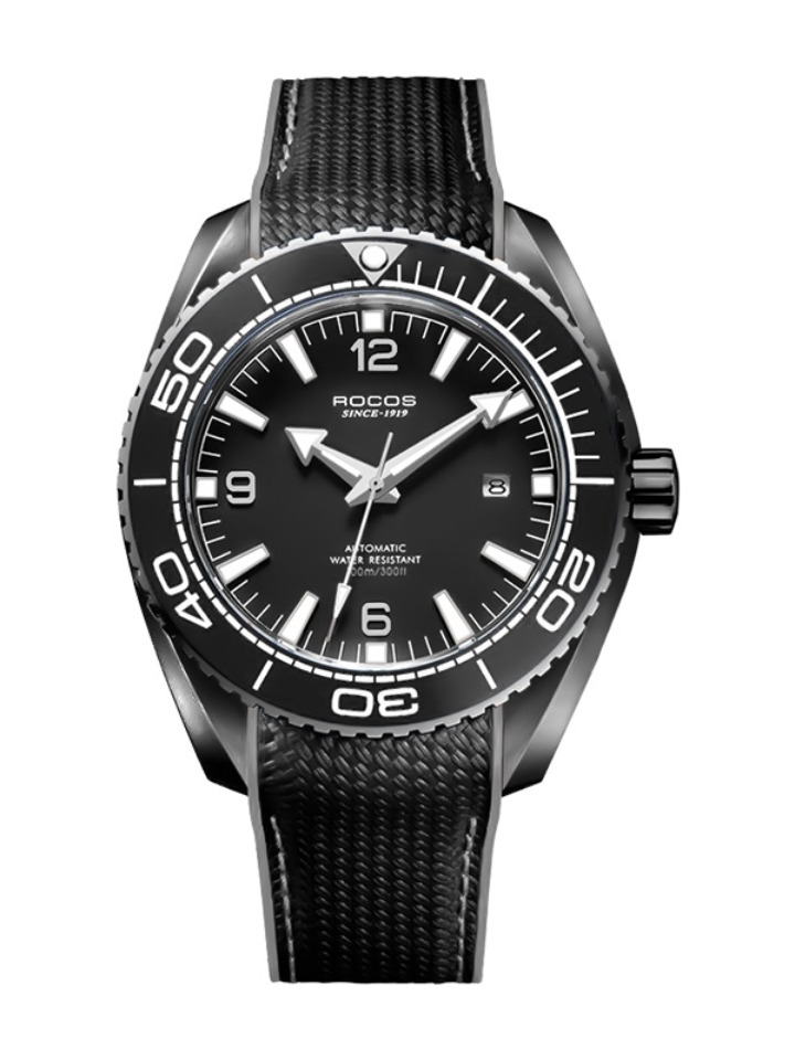 很性感的黑色腕表;时分秒三个指针,不是寻常的同心旋转指示边缘时间数字,而是由外向内,向心旋转,将人们的目光聚焦在表盘中央,新奇独特,又提示了现在的时间。