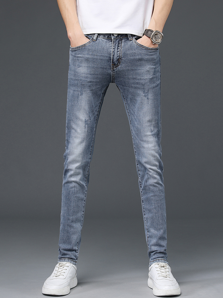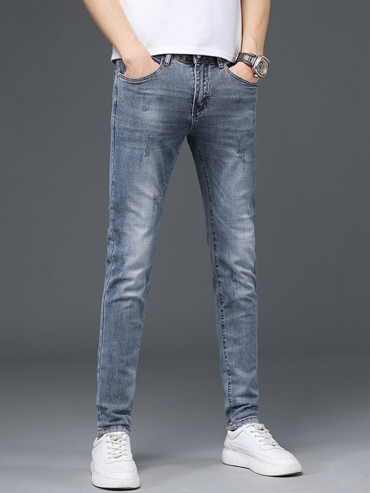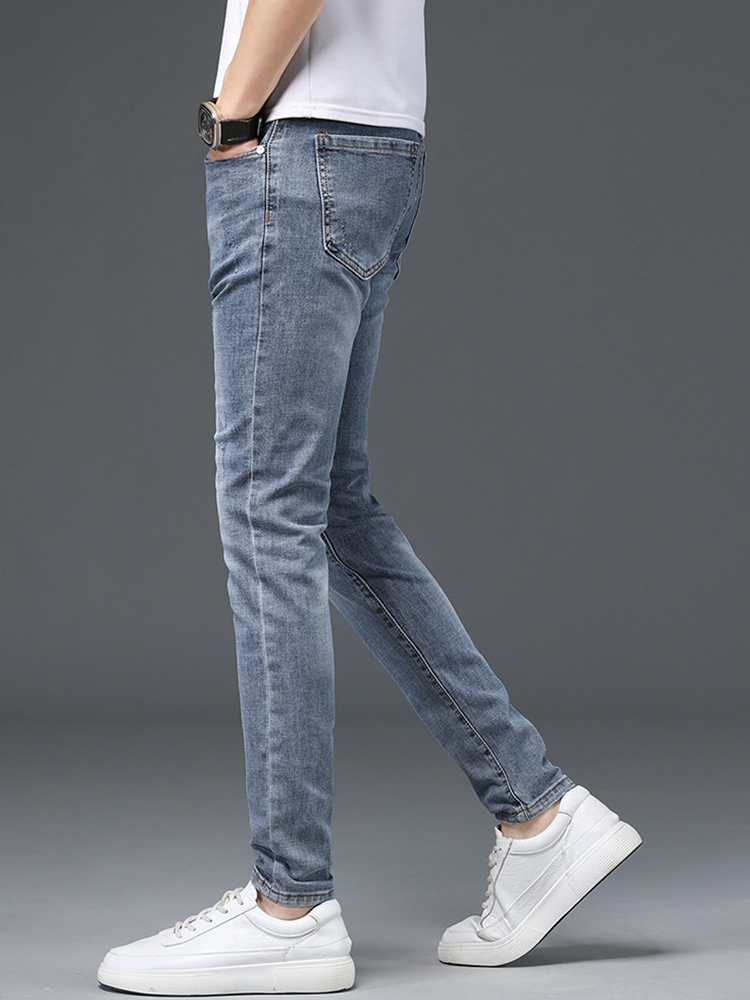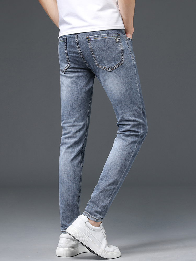 比较纯色牛仔裤,型男们更青睐复古仔裤 ,修身的款式勾勒出袖长的腿部线条 n