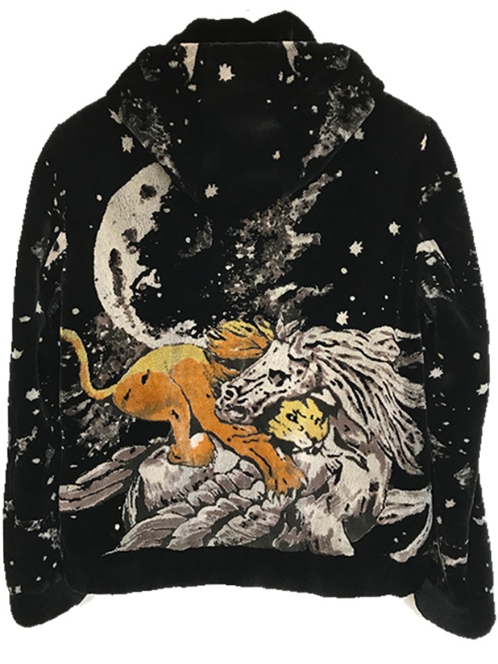 这件皮草大衣选用的是美国进口天鹅绒,底绒厚实,全身整貂,毛针长度跟底绒一样