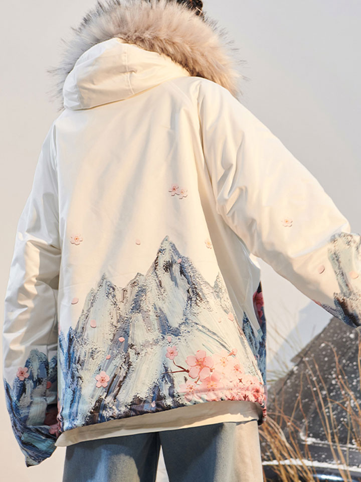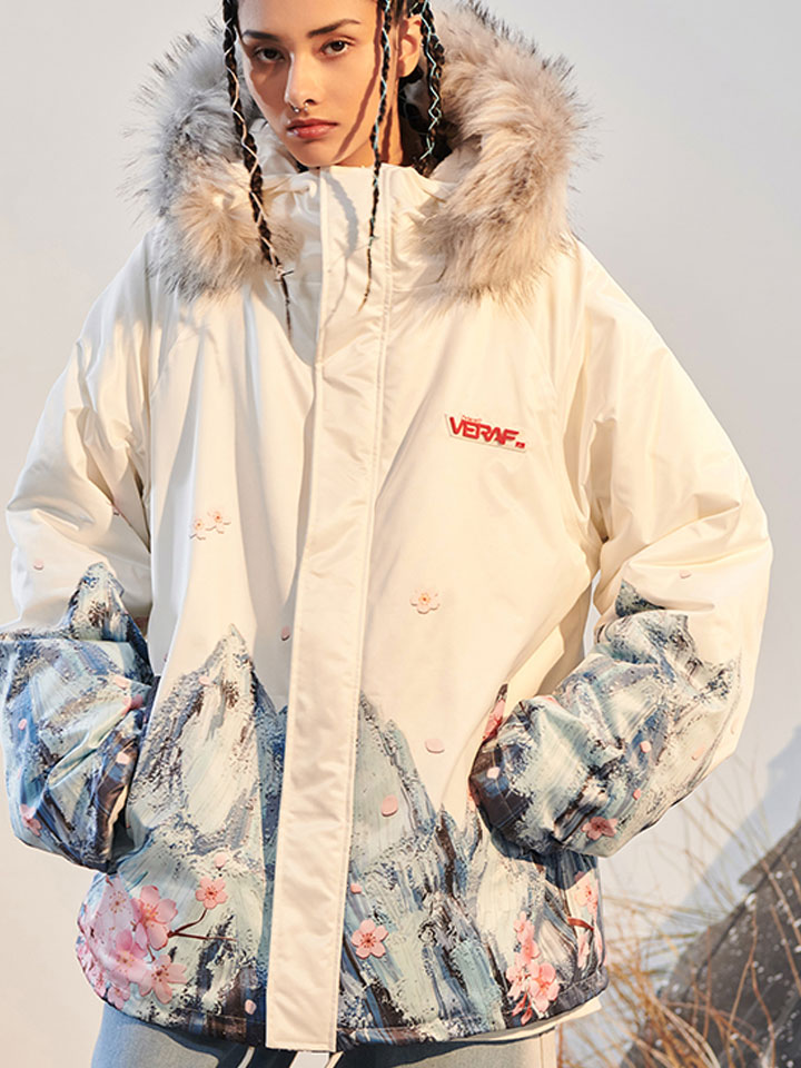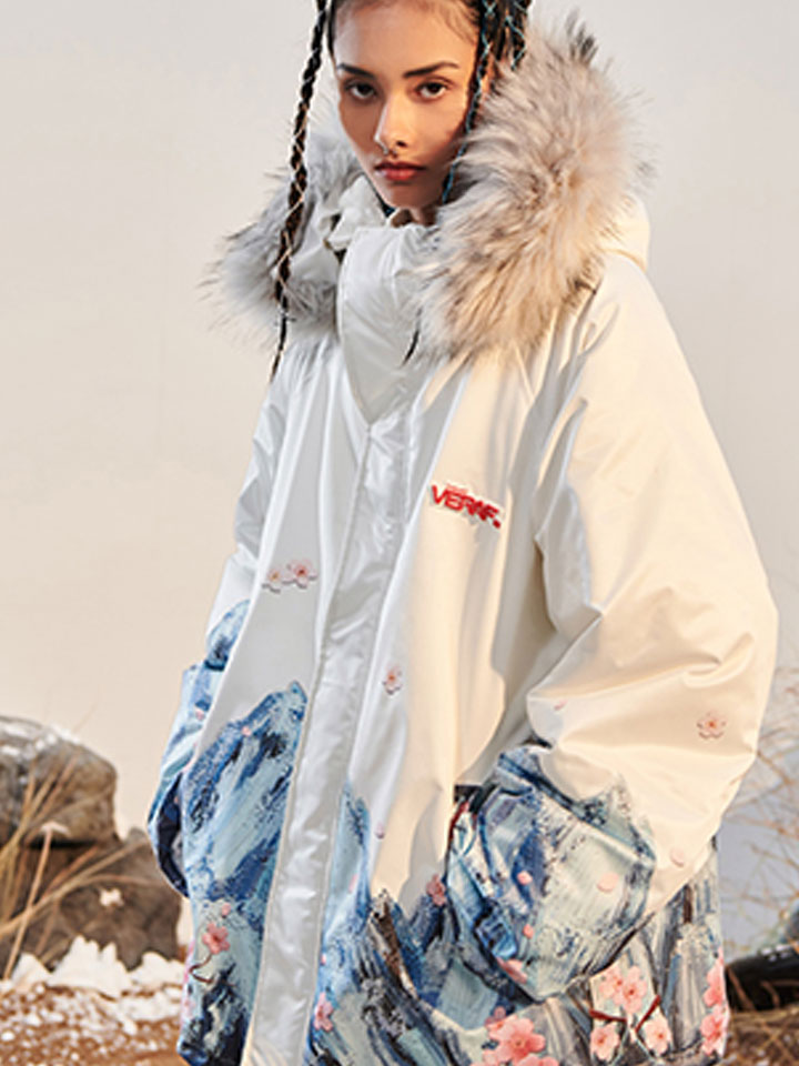 自带层次感的油画印花设计,大面积的点缀,从外观上就能让这款羽绒服很有设计感哦。