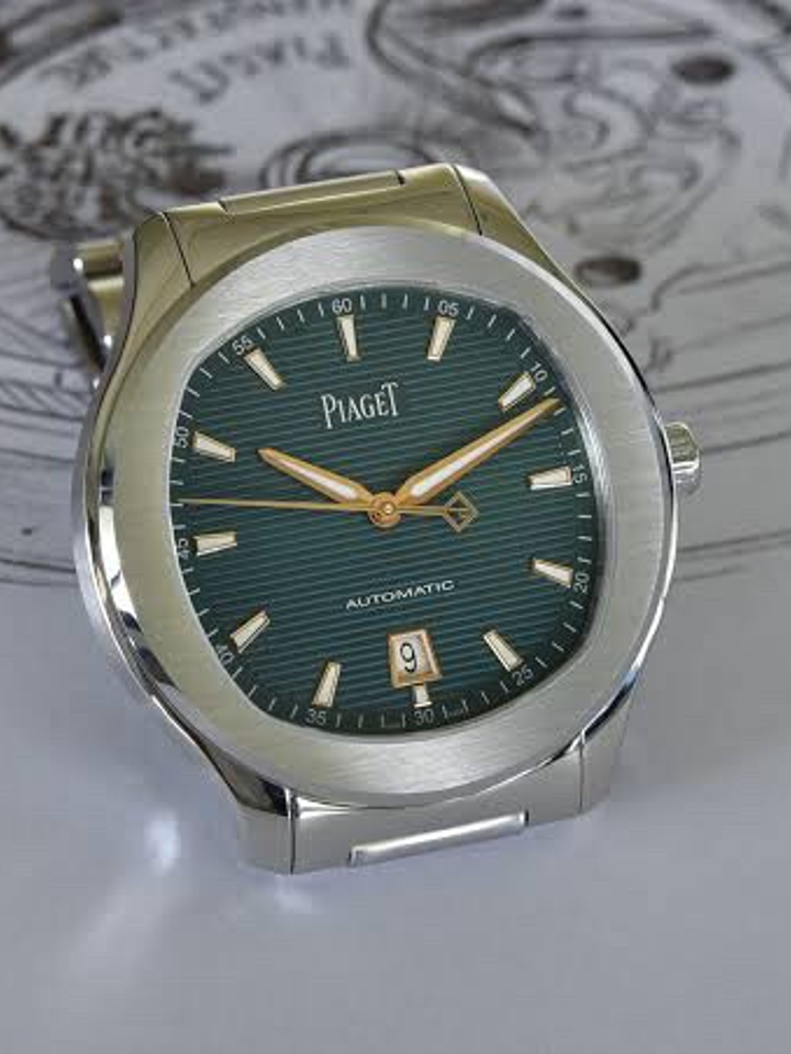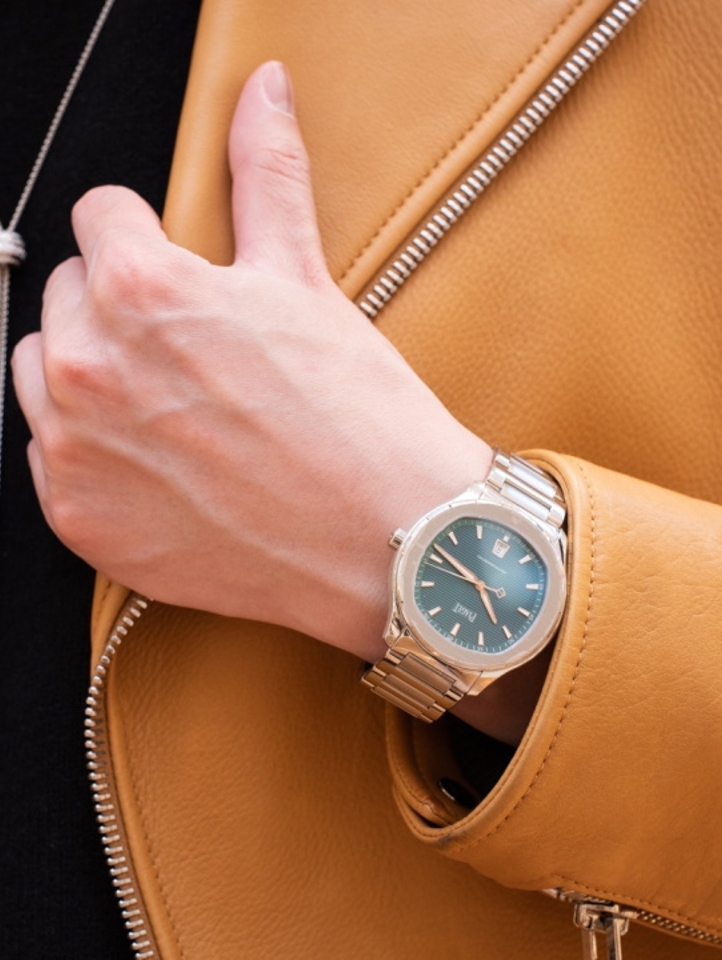 半球形蓝宝石玻璃,光泽透亮;细腻的不锈钢表圈,字面别致的分钟刻度,小框格纹设计的大日历,充满了德国式的理性严谨气质。