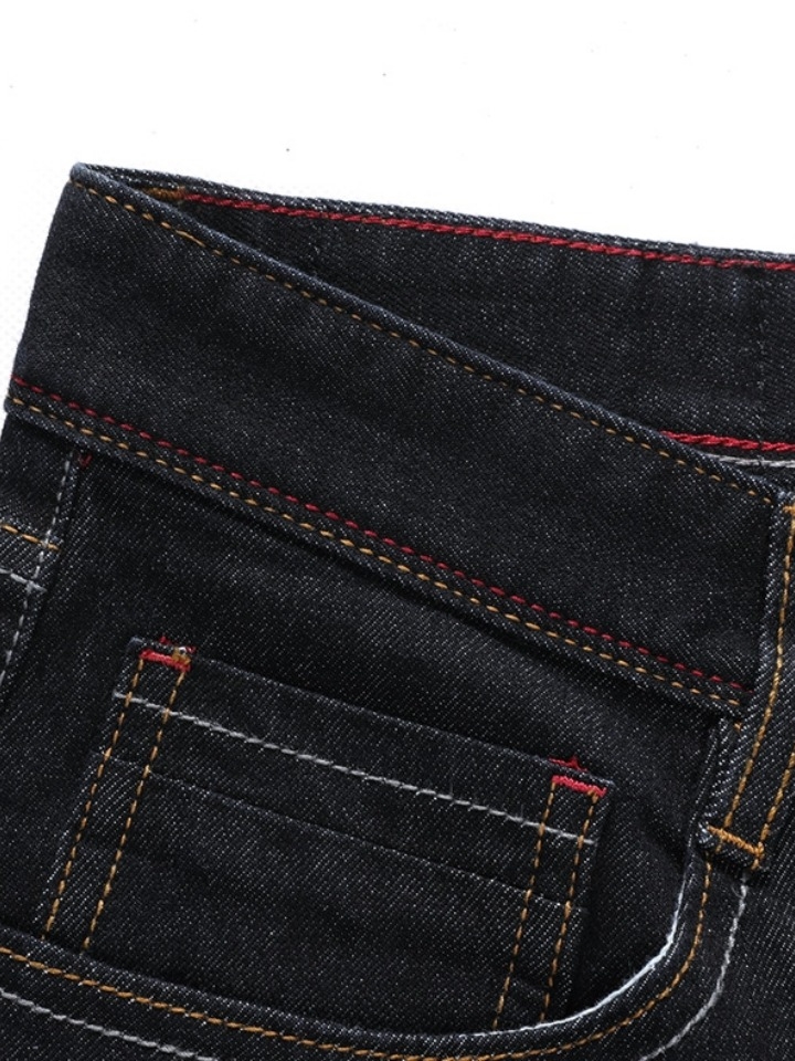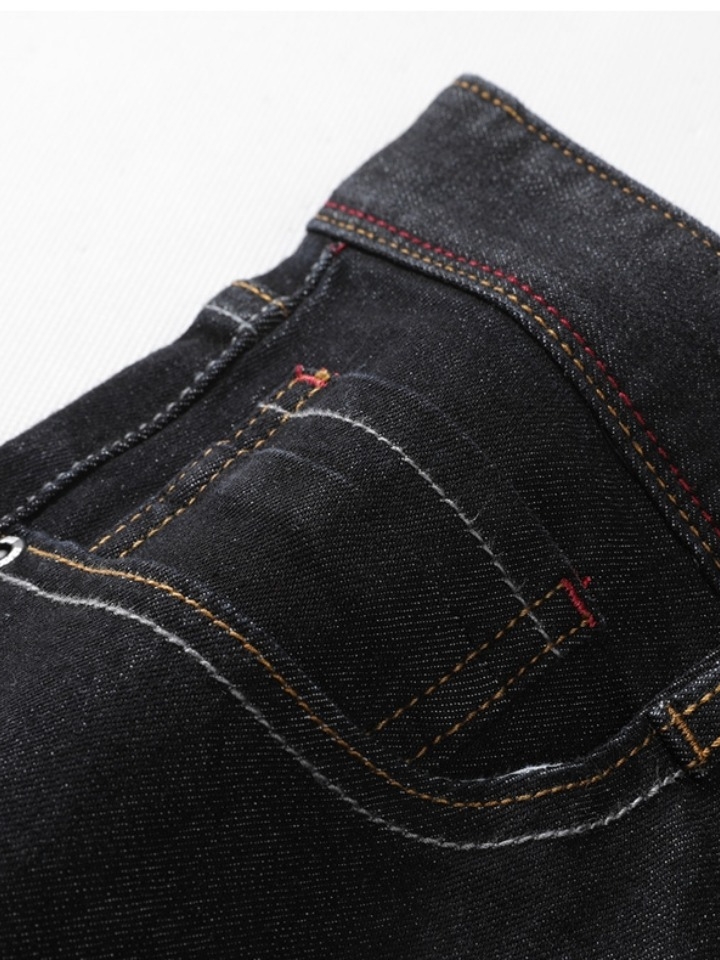 高腰设计,拉长身材比例。高腰牛仔裤,显瘦显腿长。直筒裤型,修饰腿部线条。