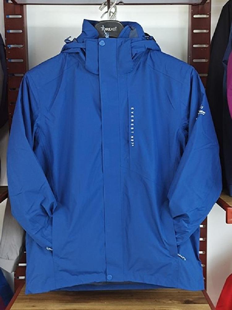 户外男女式三合一冲锋衣,防水、防风、透湿,帽子有三维调节,前胸民族胶膜团搭配拉链,更彰显专业性,配有内主项拉链,可与抓绒服,棉服,羽绒服内件