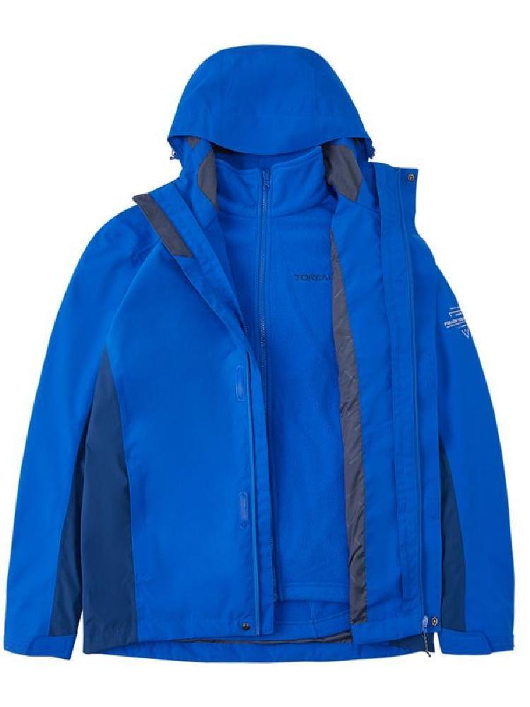 Toread/探路者三合一防风保暖防水冲锋衣两件套,衣服独特的功能性面料,有效的将保暖、防风、防雨三位功能集合为一体,满足户外环境需求,更好的应对户外天气的变化。