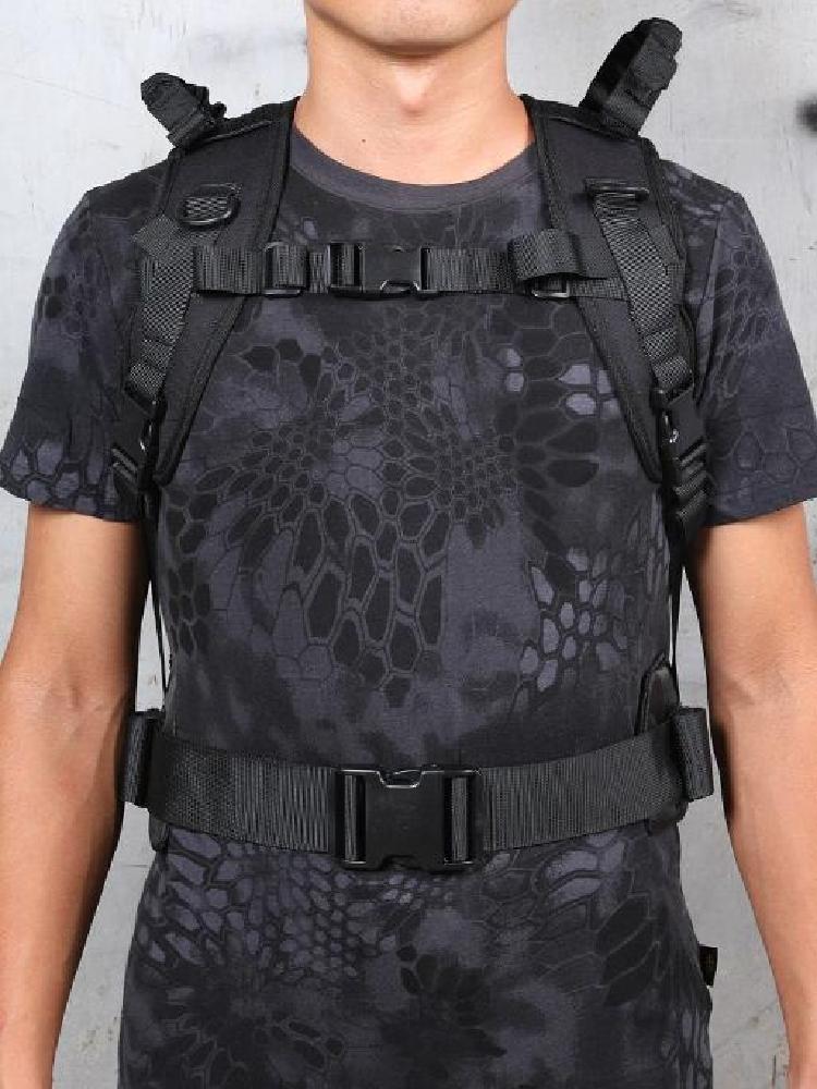 一款战术户外双肩背包,采用结实耐磨的尼龙面料,具有良好的防泼水性能;大容量设计,背包外围还增加了织带系统,可方便挂载其它附件包具,户外出行使用更方便;EVA内衬肩带,可有效提升背负的舒适度。