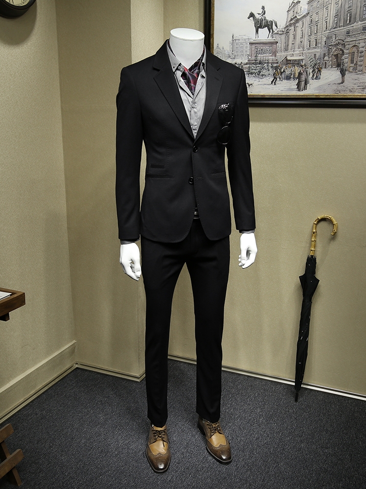 这款西装采用进口的高档面料,质地厚实富有弹力,抗皱性好,使男士方便打理。修身的版型,面料挺括有型,上身凸显精神。袖口四粒扣,做工平整精细。搭配立领衬衣非常适合休闲男士风格。