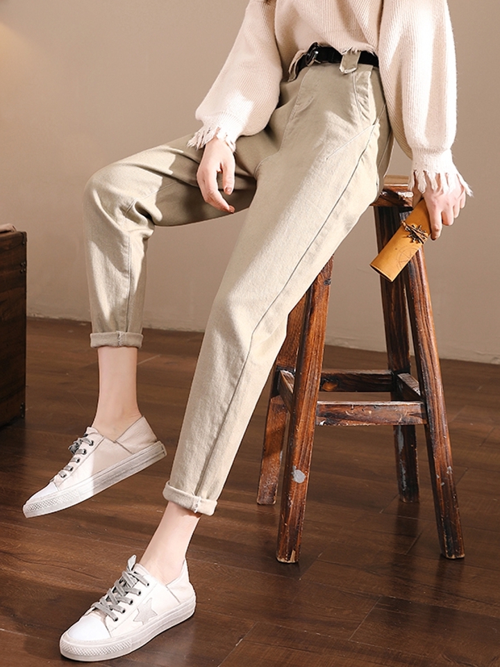 微高腰是修炼气场的第一步,站要如松挺拔,后腰做了松紧设定,把自己绷的紧紧的可不酷,大活折玩出了哈伦的型,多了几分不羁的率性,前后下脚做了拼接的设计,大牌感从细节里见。
