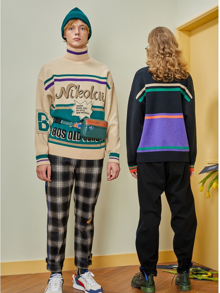 如果说冬天最最不能缺少的是一款羽绒服,那么最不能缺少的就是一款高领毛衣了。这款通过比较复古的色彩和元素进行呈现,带来了别具一格的时尚体验。版型也是很宽松的休闲版型,比较实穿也也比较舒适。加上印花点缀,单独穿也不会出错。