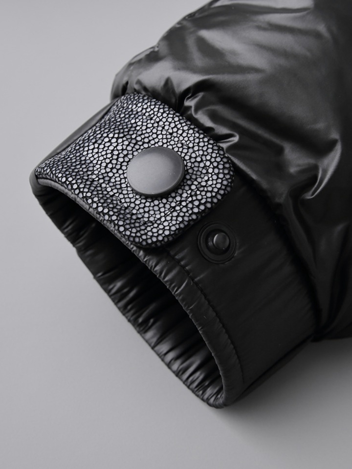 精选优质白鸭绒,触感轻盈柔软,保暖隔热性能优良,搭配精致细密的车缝线,可以有效防止钻绒。立体修身的剪裁穿着十分有型,衣服轮廓自然流畅,穿在身上端正又得体。