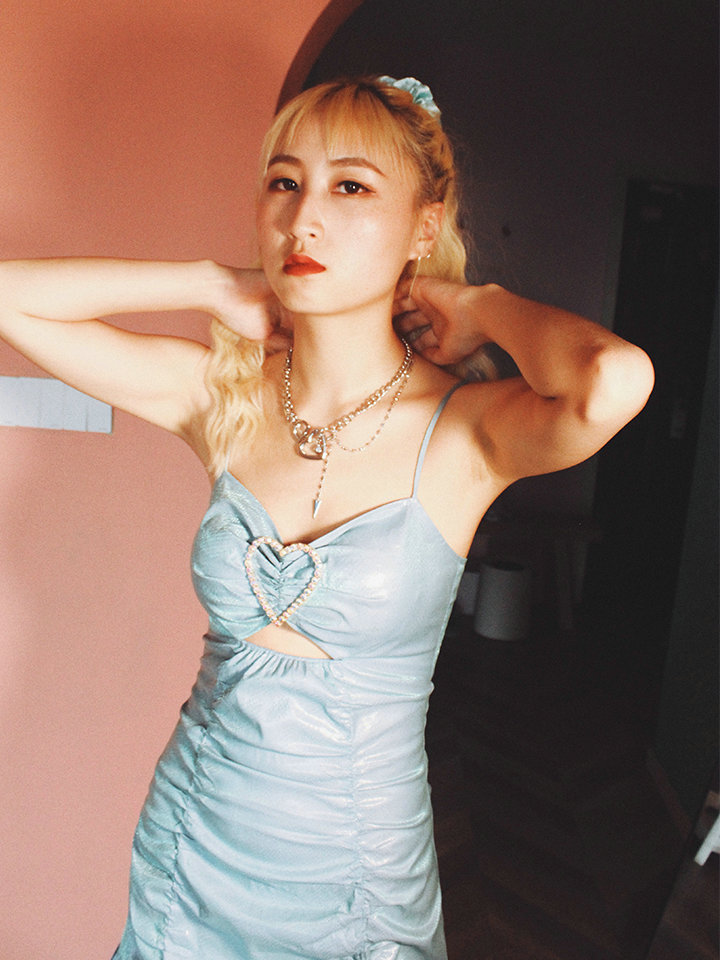 这款连衣裙可以搭配一双中筒袜,少女气息。