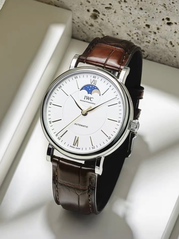 浅色系的表盘上,加入别致诗意的月相的设计,和经典的罗马时标,呈现典雅,浪漫的时尚风情。