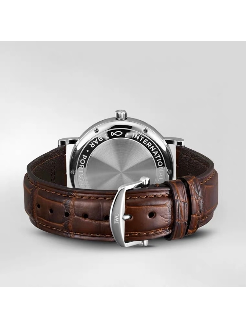 深棕色的鳄鱼皮表带,可以调整松紧,和银白色表壳的撞色,演绎摩登大气的潮流美感。