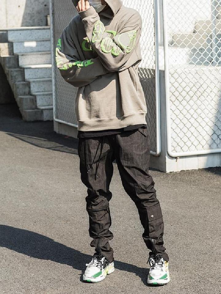 以酷感十足的深黑为主色调,搭配开叉设计,展现出丝丝暗黑味道与叛逆不羁气息。裤身加入金属拉链设计,且与底色形成撞色搭配,满溢前卫街头感。