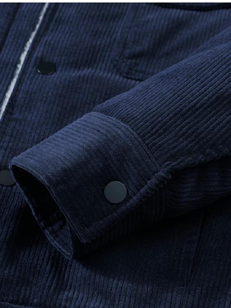 充满着复古腔调的一款外套设计,中长款的版型设计凸显利落气质,又糅合了温婉腔调,灯芯绒材质的运用,质感挺括,映衬出满满的怀旧感,搭配帅气的小翻领设计,更显精致!