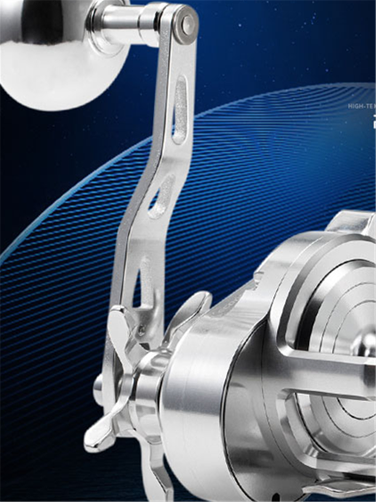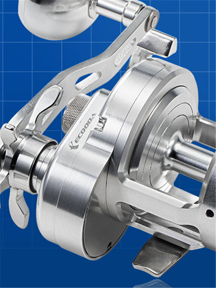 金属钓力调节钮,旋钮带响声,手感好。金属摇把镂空设计,保证了刚性的同时减轻重量。8个精密轴承和1个单向轴承,碳素材质摩擦系统,持久顺滑流畅。