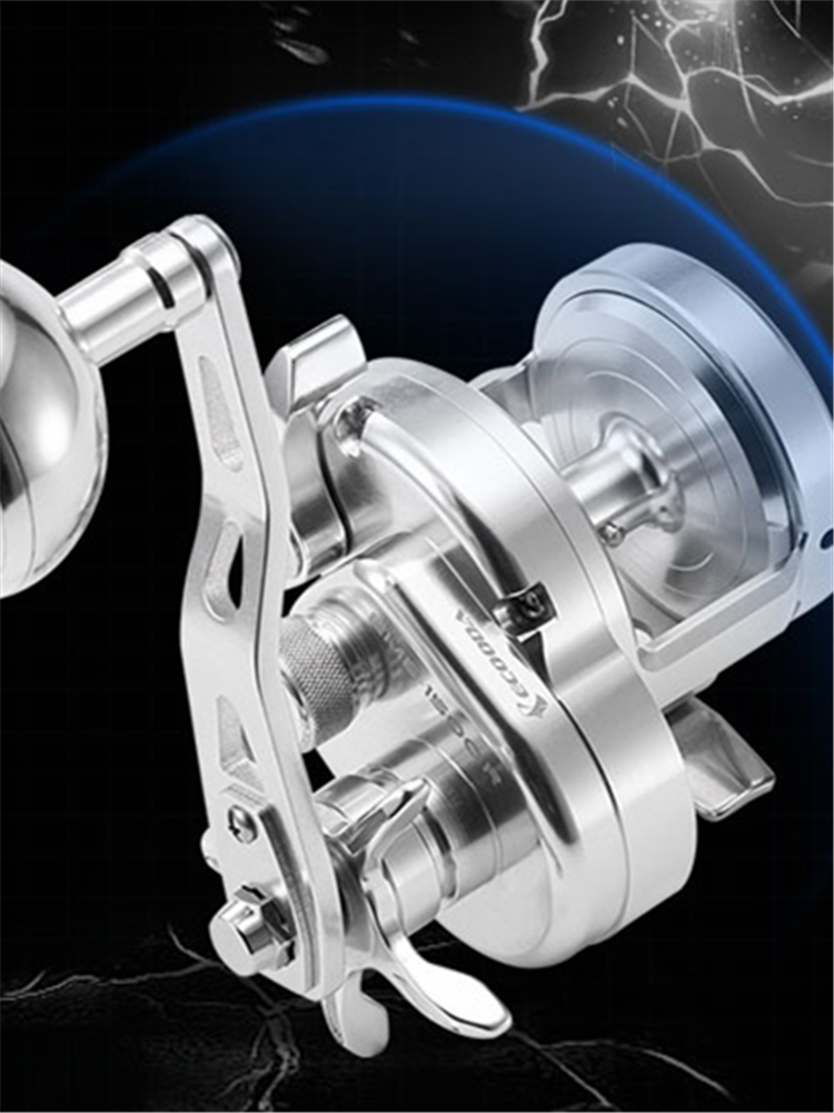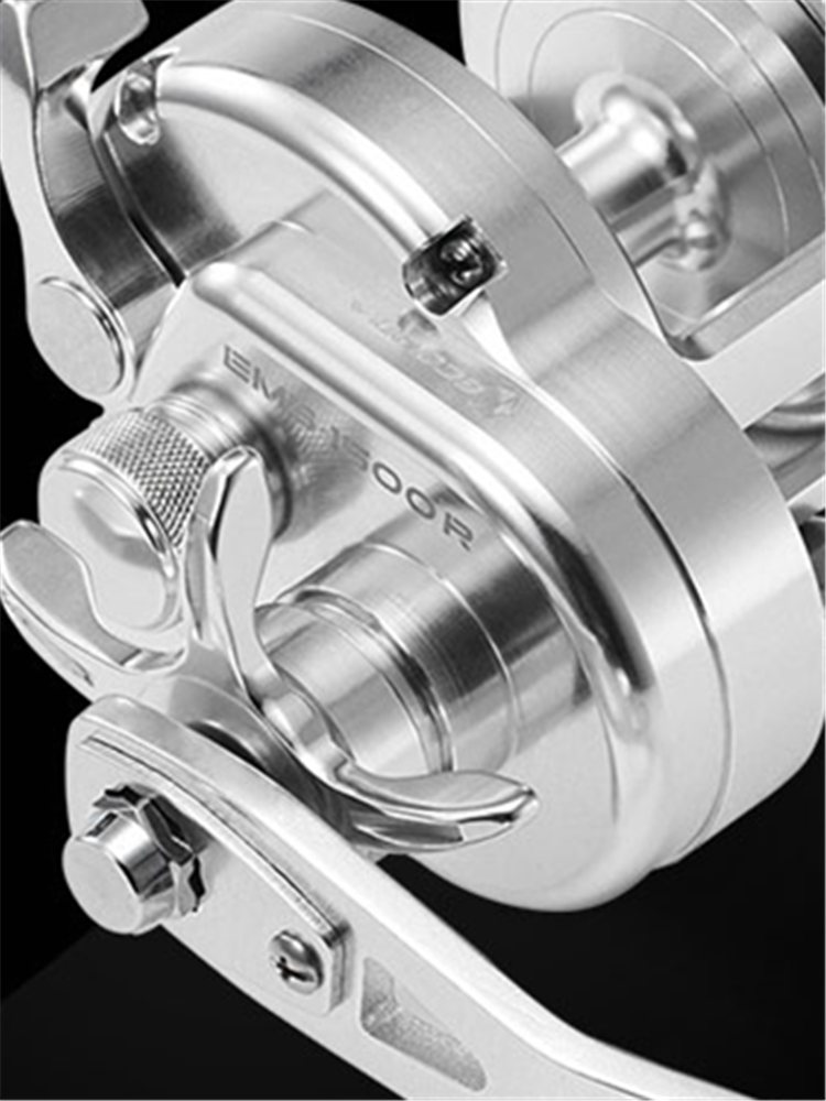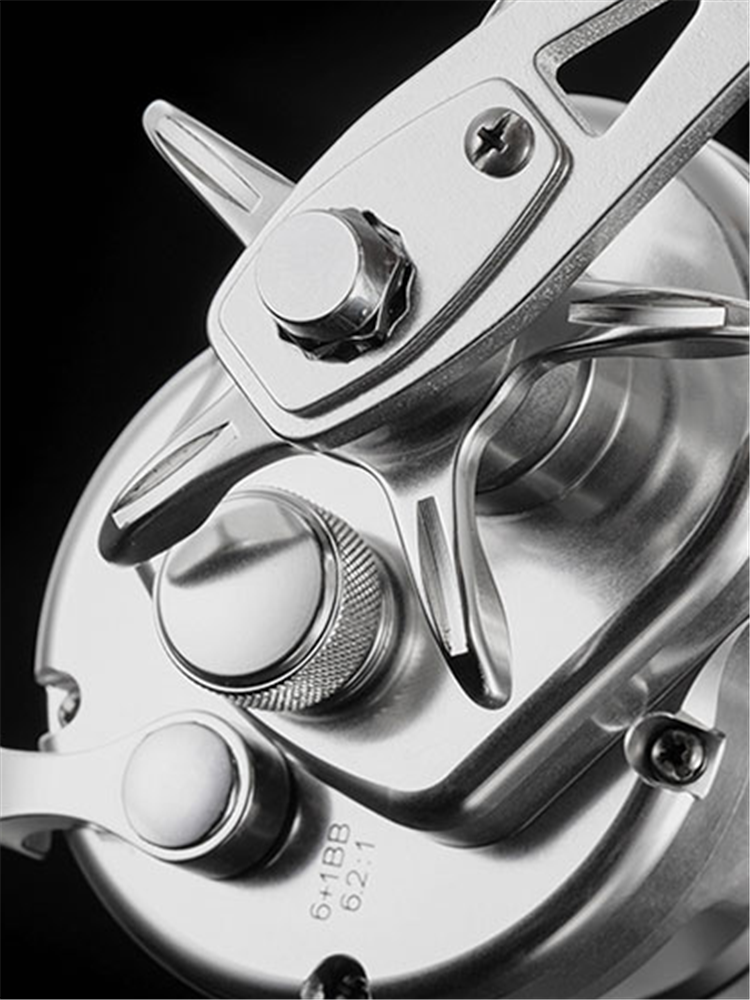 多档调速开关,可根据需要随时调整。简易的线号设定,可设定已储存好的6种线中的任意一种线号。六个精密不锈钢轴承加一个单向轴承,高强度精密加工铜齿轮和不锈钢齿轮,手感顺滑。使用碳素摩擦片,拥有强大钓力