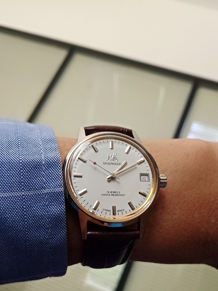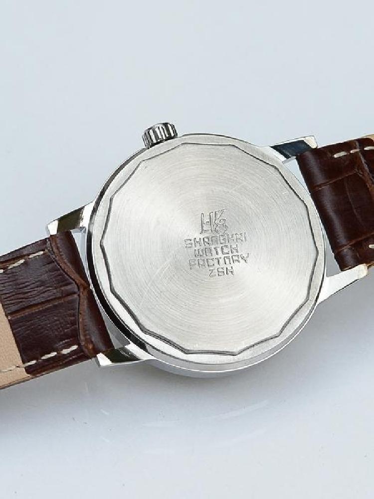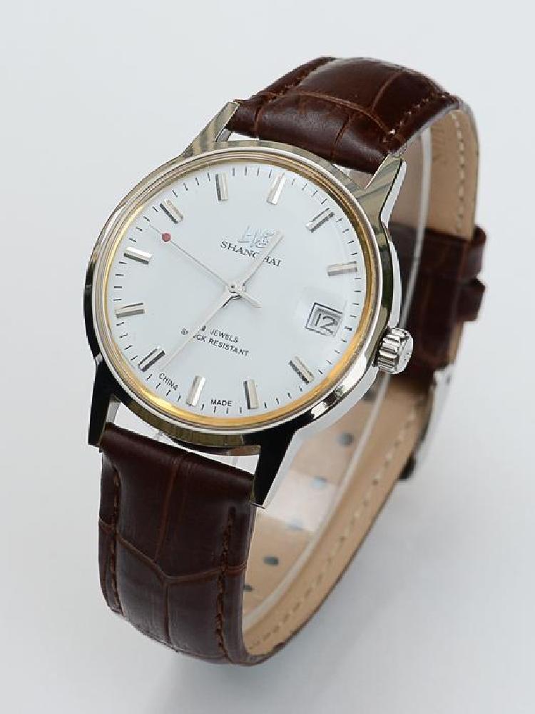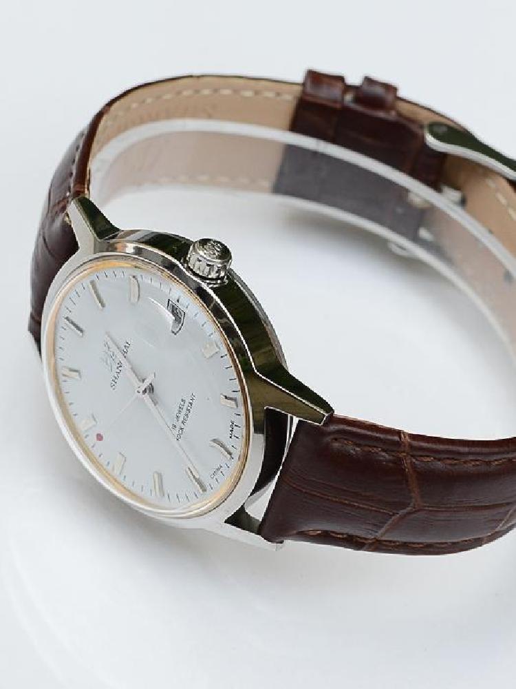 上海表,始于1955年,经久不衰。这款男士手表的表镜采用高强度的耐磨玻璃,晶莹透亮,复古的罗马刻度周边带有圆闪饰纹,散发浓郁的古典韵味,表盘中间带有上海字样的LOGO,与整体搭配协调美观,又彰显了品牌的不朽魅力。