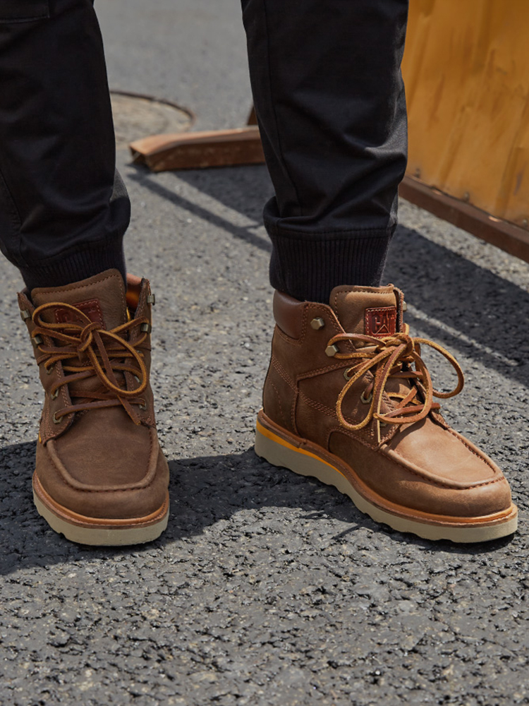 这款复古的休闲靴搭配起来也是极为简单。上身可选择一款白色T恤外搭纯色的棉服,下身搭配一条棕色的工装裤,干净利落。再选择这款休闲靴,更能凸显街头时尚风格,为你打造潮人形象,获得更高的回头率。