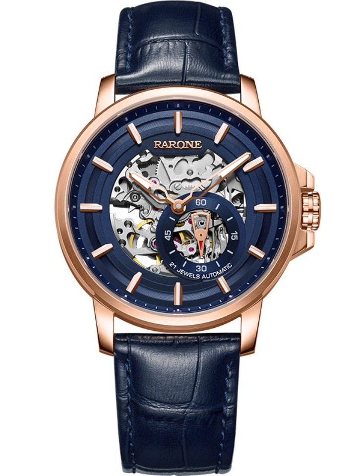 这款防水机械表,六点为的镂空装饰更是轻松的凸显出科技范。优选的真皮表带结实耐磨,九点和三点位的个性小表盘更是凸显时尚的设计。适合年轻一族日常佩戴。