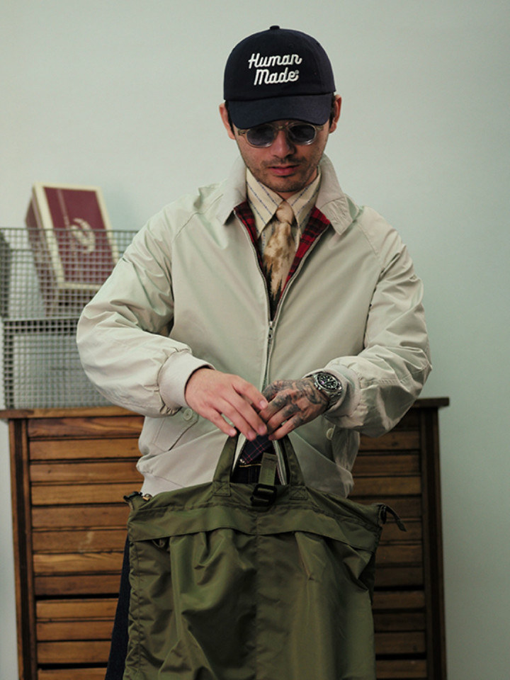 搭配休闲裤与休闲帆布鞋,衬托出帅气的古典气息。