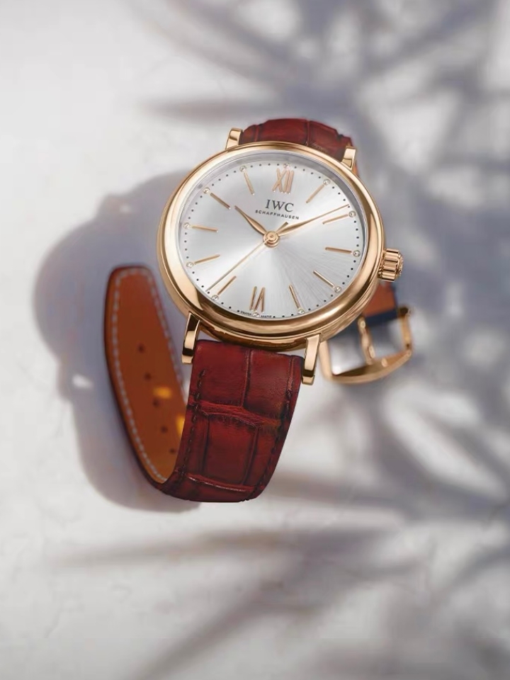 18K红金的表壳,搭配酒红色的鳄鱼皮表带,醒目摩登的配色,诠释大气,时髦又个性的时尚感。