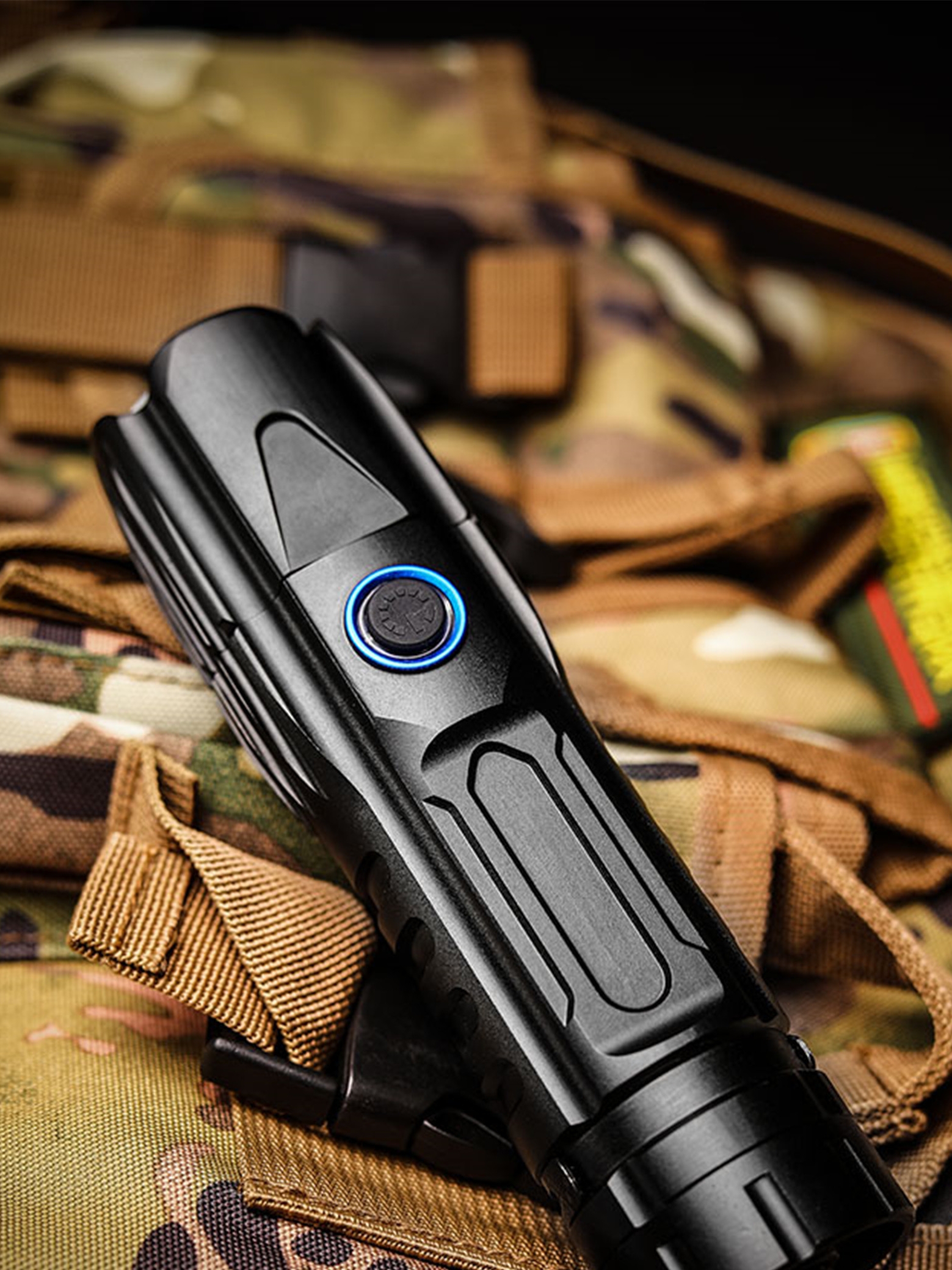 筒身选用航空级材质,耐酸碱腐蚀,防水性强。波浪提手,防滑性好,握感舒适。创新三灯头设计,照射范围更广,亮度更高。底部选用硬质材料,韧性强,可击碎玻璃。