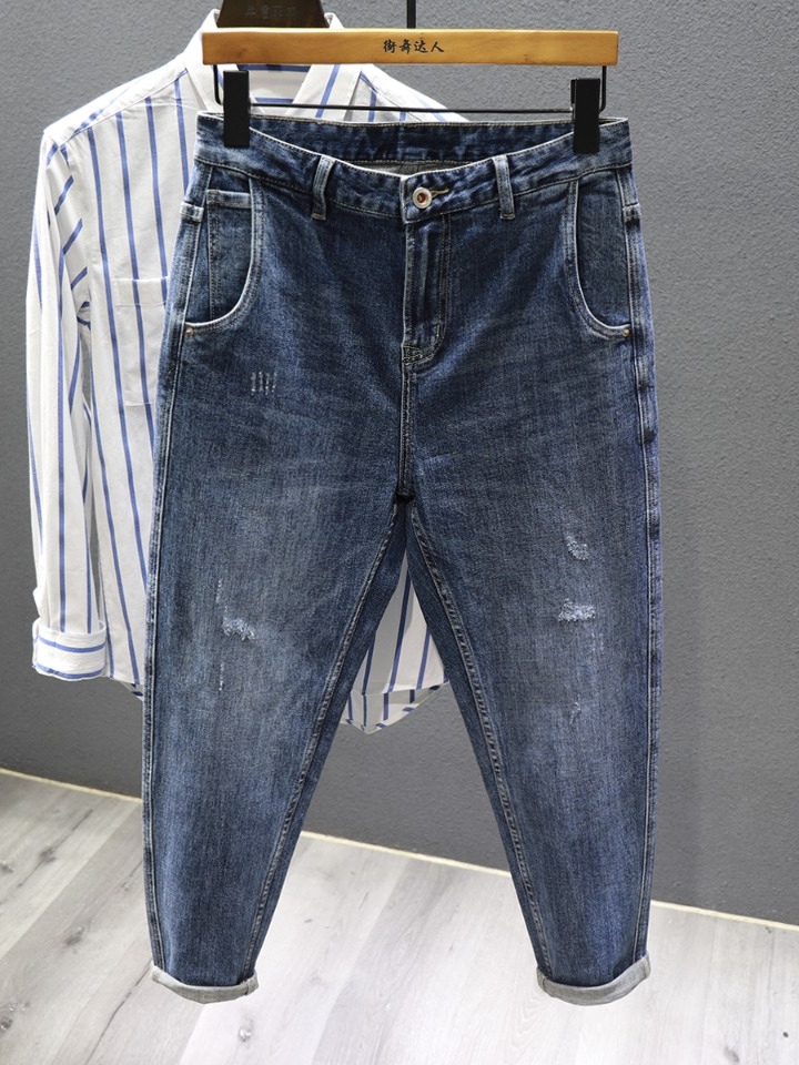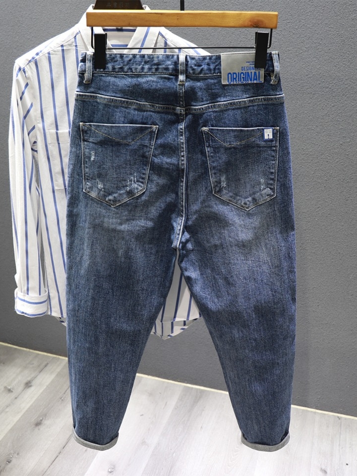 很有细节设计感的一款休闲牛仔裤,采用优质面料制作而成质地挺阔有范儿,穿着柔软舒适,挺括有型的修身版型设计,体现了男性阳光开朗的一面,时尚感十足;结合舒适的棉质牛仔面料,时尚百搭;打破常规牛仔裤,加入破洞做旧设计,更加青春时尚。