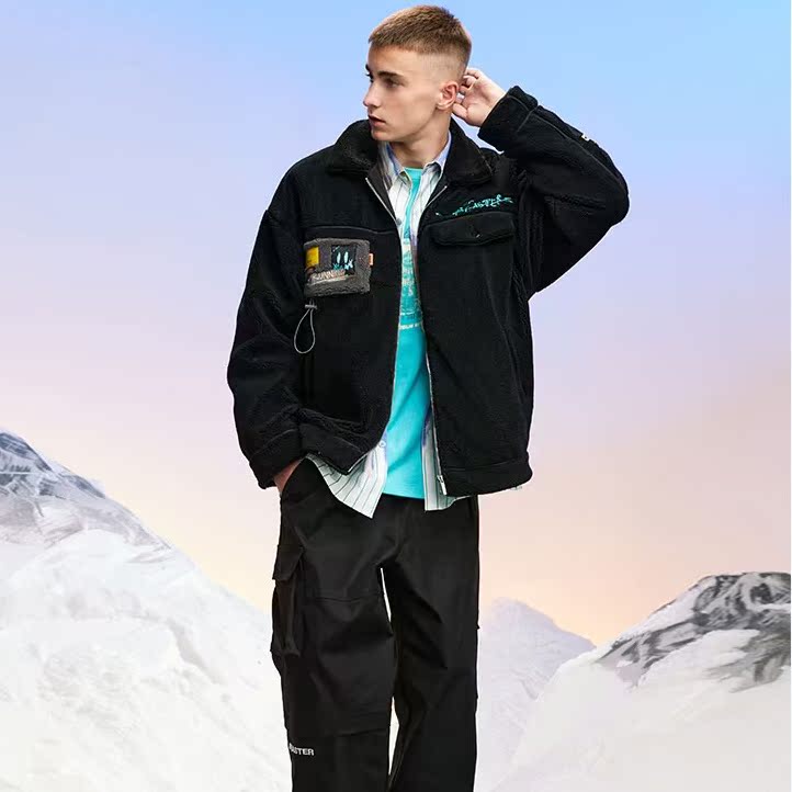 外套精选鹿皮绒精心制作,细腻柔软又结实耐磨。内里羊羔绒拼接,柔软亲肤又保暖,品质上乘。宽松的样式,完全不挑身材,尽情释放率性力量。
